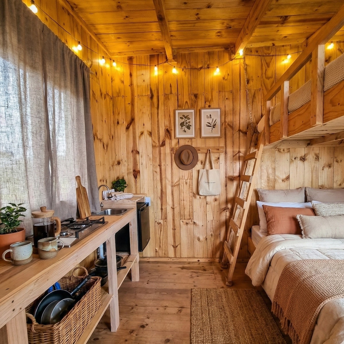 Escápate a nuestra casita en el árbol, un refugio único en medio del bosque. Disfruta de vistas majestuosas desde tu terraza privada, perfectas para contemplar amaneceres y atardeceres inolvidables. La casita combina diseño rústico con comodidad moderna: cuenta con una cocina equipada para preparar tus comidas favoritas. Ideal para parejas o familias pequeñas que buscan desconexión y conexión con la naturaleza. Vive la magia de dormir entre los árboles en un entorno tranquilo y exclusivo.