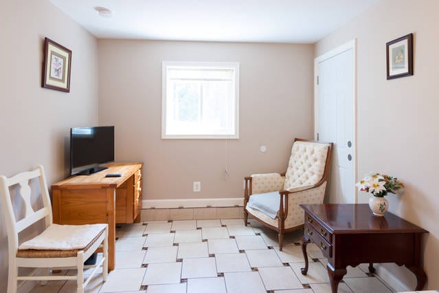 Enjoy a charming basement suite with a private entrance, queen-size bed with fresh sheets, a full bathroom, TV, and air conditioning. The kitchenette includes a coffee maker, coffee, sugar, microwave, mini fridge, and basic utensils. Relax in the backyard, ideal for morning coffee. Located near Dulles Airport, One Loudoun nightlife, and Northern Virginia wineries. Guests have private access and on-site parking. We respect your privacy but are available for assistance. Book now for a comfy stay!