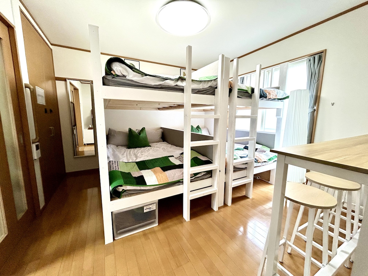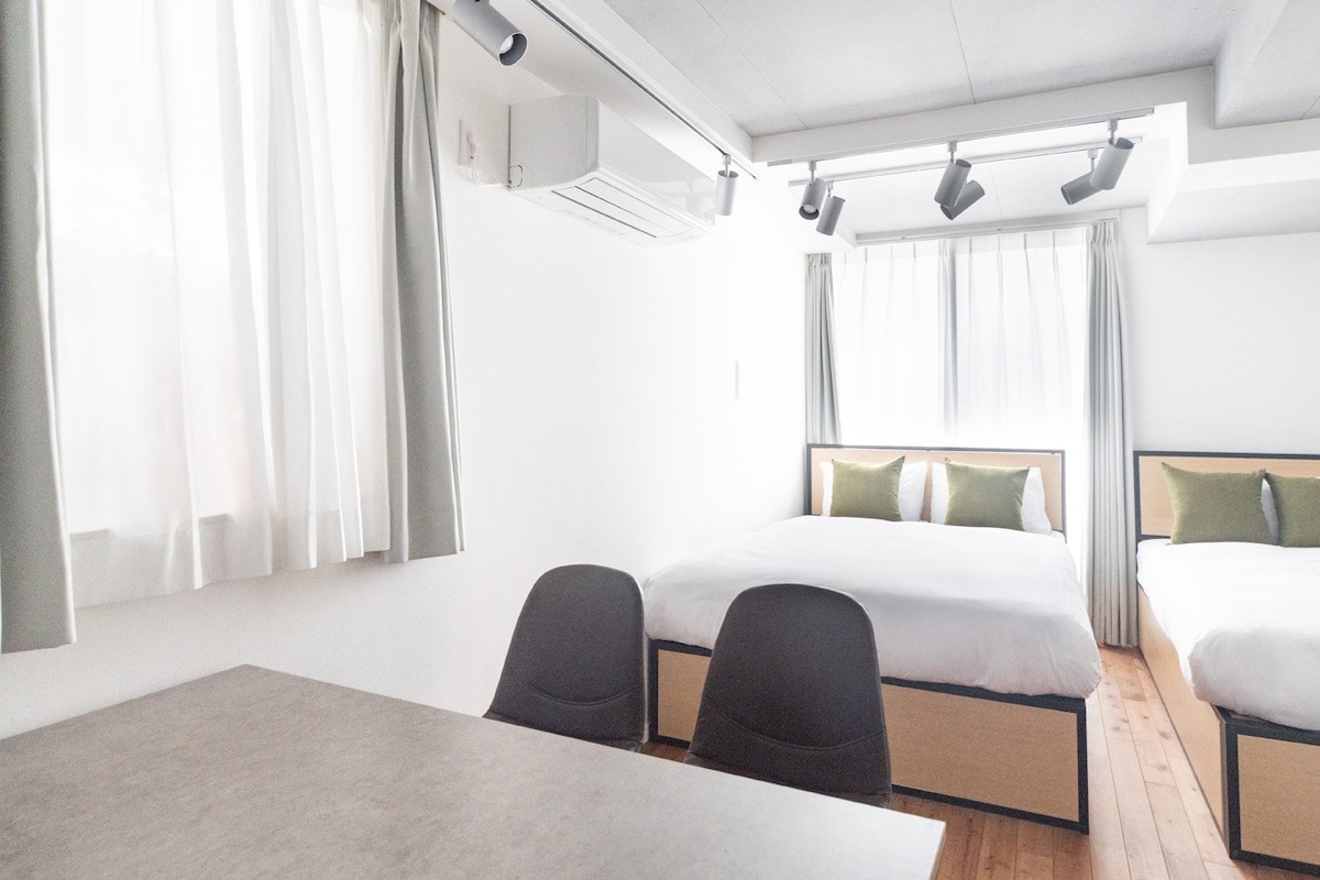 Enjoy a private stay in a licensed accommodation next to a 24-hour Lawson. Just 30 minutes by train to Tokyo Station. Free bikes, Wi-Fi, Amazon TV, and a complimentary taxi from Kawaguchi Station on check-in day. This popular prefab has no kitchen, so you’ll likely eat out or use ready-made meals. The room is simple, with two beds and two small desks—no extra facilities. In the evening, unwind with your favorite drink.