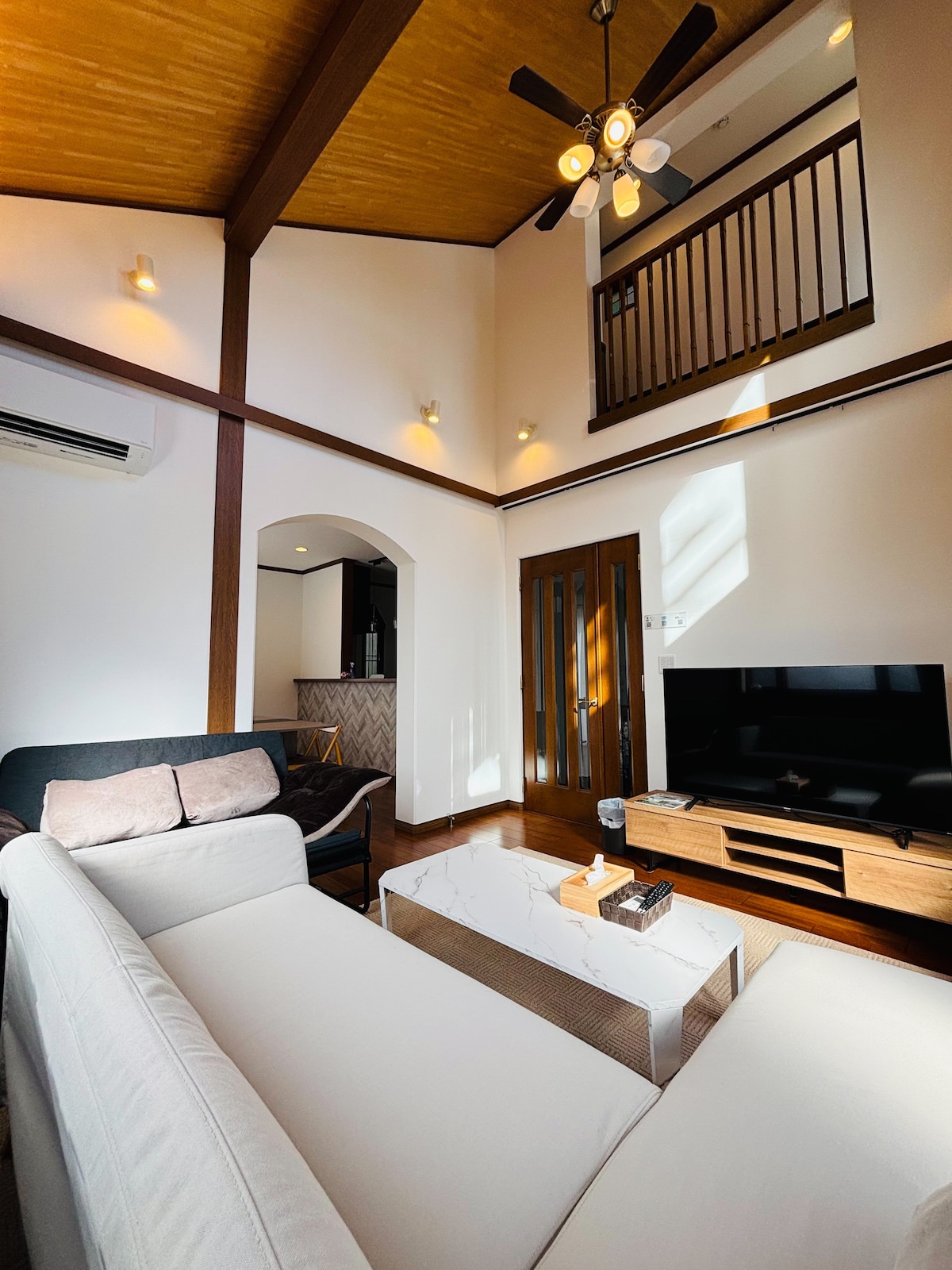 地元の画家のアトリエを改装して貸切宿を作りました。コンセプトは泊まれる美術館です 家中に展示しているアートとジブリの世界観を楽しめます 人気のジブリパークにとても近くて車で10分です(徒歩30分) 一棟丸々貸切です 人気の温泉施設とファーマーズマーケットに徒歩10分です 18畳の大スペースリビングと18畳のダイニングキッチン 65インチの大型モニターテレビ(LG)設置 三口コンロの広々フルキッチン 200平方メートルの一軒家 全室6台エアーコンディショナー設置 高速Wi-Fi完備 電動自転車を9台用意しています(1日1000円、2軒の宿で共有していますので予約が必要です) 駐車場3台(敷地内1台、敷地外2台) こちらのユニークな家族向けの宿泊先で、思い出を作りましょう。 設備 ・冷蔵庫 ・洗濯機・ガス式乾燥機 ・電子レンジ ・水洗トイレ(ウォシュレット) ・炊飯器 ・電気ケトル ・ヘアードライヤー ・ホットプレート ・オーブン ・フライパン ・鍋 ・グラス ・食器類 ・コードレス掃除機