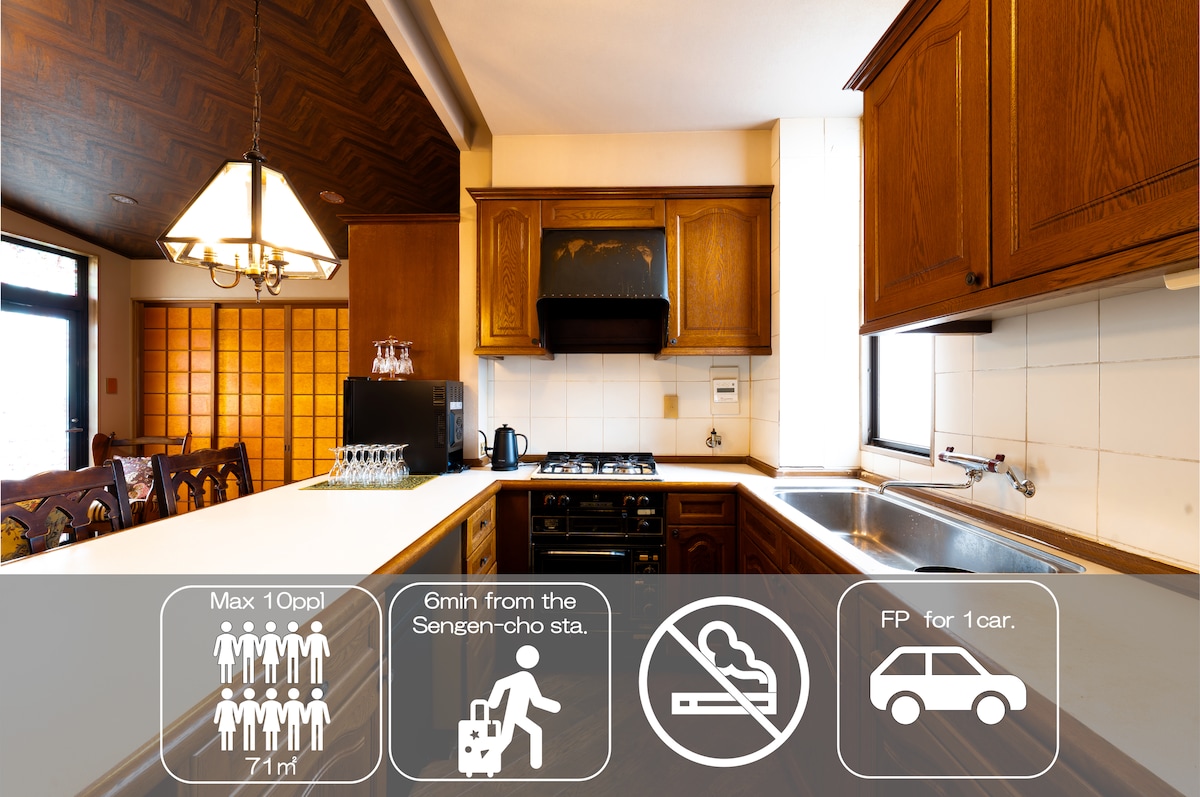 位于名古屋市中心,距离地铁“今池站”仅需步行2分钟的绝佳地段,这座可容纳8人住宿的别墅。为长期住宿的客人准备了便利的燃气烘干机。 此外,别墅前还配备了免费停车位1个,即使在下雨天,您也可以轻松携带宠物或大型行李办理入住手续!
