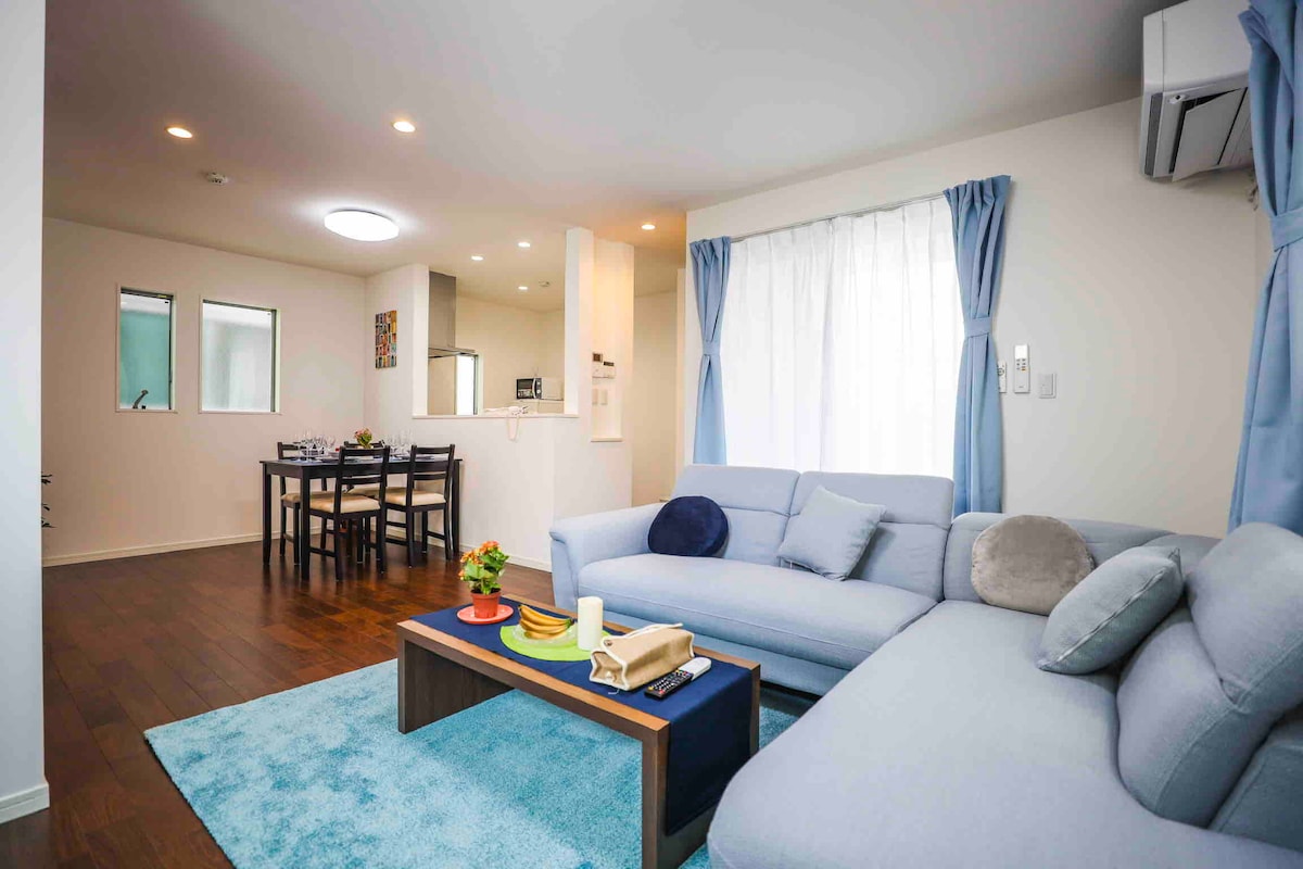 MUJI风格新建独栋94平/难波&日本桥&鹤桥&黑门市场直达8-10分钟/8床5卧室/可住12人