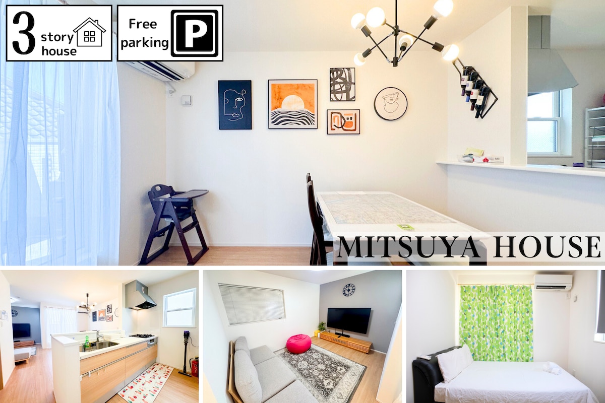 [直达难波、日本桥、鹤桥]有免费停车场、距离最近车站步行8分钟、最多可入住10人、私人3层住宅