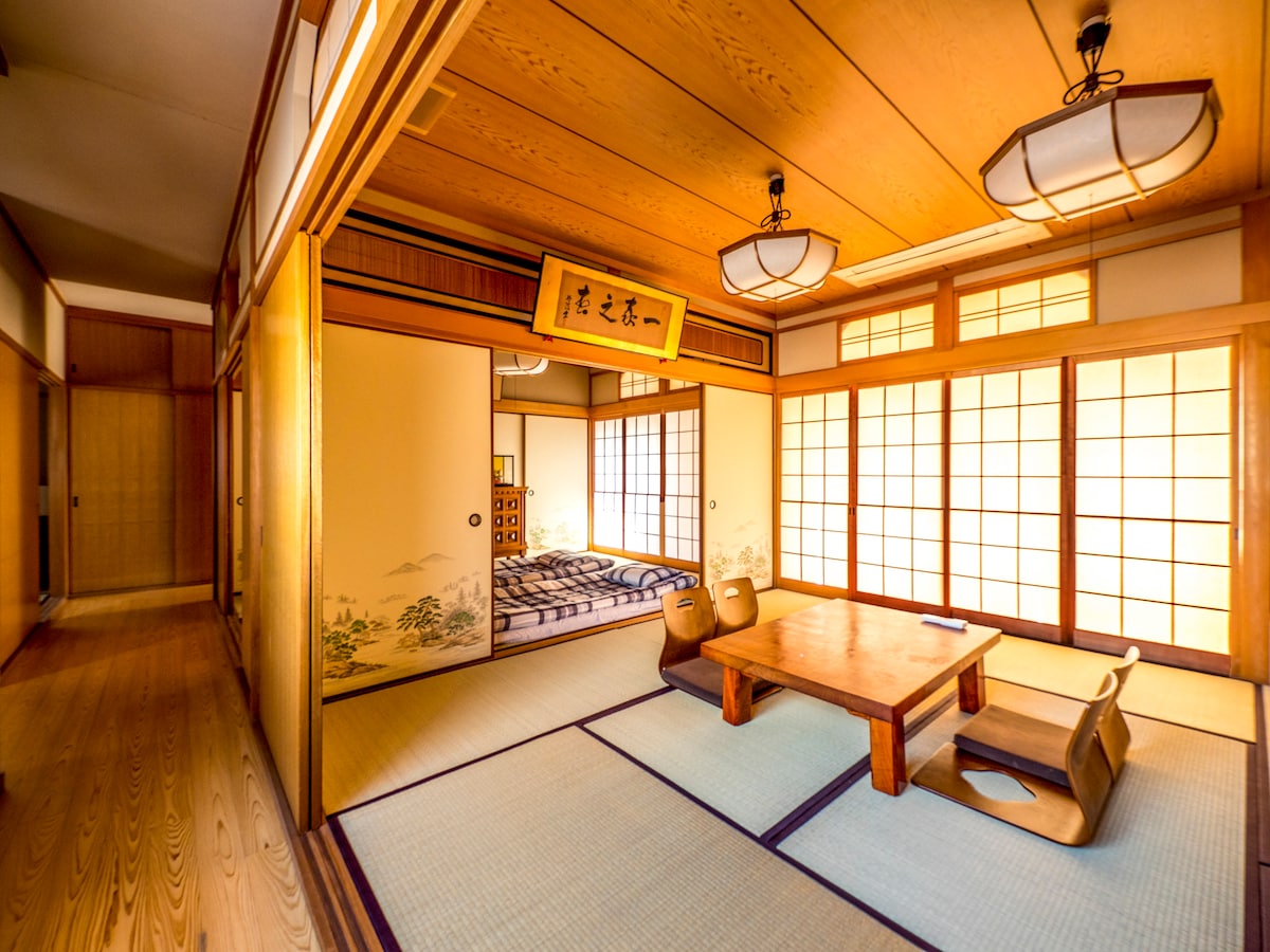 民宿,不等于廉价。打破对民宿的传统定位,我们能给予您的更是一份家的温暖,超越五星级酒店的服务! 1. 我们致力打造"吃喝玩乐住行"一站式服务,让您不虚此行。 2. 房屋内的设备、展示品、用品均为5星级标准。 3. 我们的清扫工作由"日本第一"之称的专业清洁公司负责,卫生质量严格把关。 4. 民宿周边有许多"隐家"餐厅,都是当地人有口皆碑,爱不释手的美食。我们可为您推荐及免费预约。所谓"酒香不怕巷子深",在享受高性价比的同时,相信也一定能满足您的味蕾,让您品尝到别具一格的、舌尖上的"大阪"。 坐落于大阪市中心(城东区),建立于明治42年(1909年)。第二次世界大战时,在空袭中遗留下来的为数不多的独立独户。于2015年由日本知名设计师设计并装潢,占地面积150平米,闹中取静。房屋外观优雅大气,内饰装潢及设施均采用现代化设备。历史文化与现代时尚的两两结合,无论是文化体验,还是宽敞舒适,都是大阪市内屈指可数的高级和风旅荘。相信这里一定会是您的不二选择! 我们在设计上追求人性化,整套房子有两处卫生间并且与洗漱区,大浴场实现三室分离,确保多人入住时,有独立空间,干净卫生的环境。