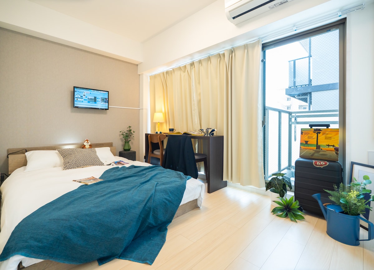 道顿堀店/大床房/最大2人/地铁步行6分/难波旅行心斋桥大丸高岛屋日本桥大阪城公园