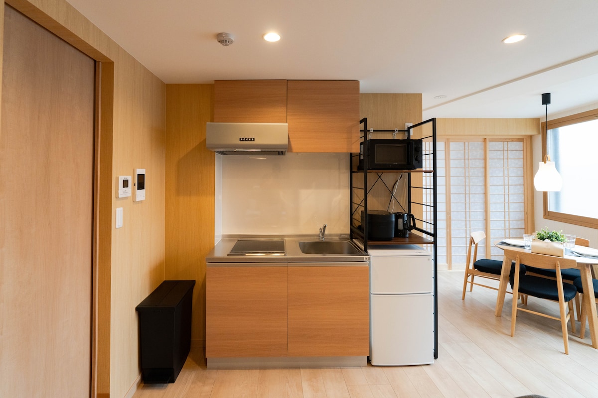 这是一间由室内设计师从零打造的 1LDK、41㎡ 公寓型民宿。 同一栋大楼内设有多间独立客房。 步行 7 分钟即可到达南海电铁与大阪地铁的天下茶屋站,从那里乘坐南海电车 2 站(约 5 分钟)即可到达难波站,无需换乘即可 35 分钟直达关西机场。 大阪地铁堺筋线还可直达京都、通天阁、黑门市场等主要观光景点。 天下茶屋是一座保留昭和时代风貌、又不断涌现新餐厅与商店的热门街区,兼具怀旧与活力。 ◆ 房源特色 安静、安全的住宅区 直达难波、关西机场、通天阁、黑门市场、京都(阪急线),无需换乘 步行 2 分钟范围内有便利店与超市 车站前设有购物中心 厨具齐全,可自行烹饪 整间独享,完全私密 自助入住系统,轻松无压力 免费洗衣机(附赠洗衣液) 洗漱用品齐全(洗发水、护发素、沐浴露、浴巾、拖鞋、牙刷、化妆棉、棉签、剃须刀) 可用日语、英语跟中文沟通 提供高速 Wi-Fi