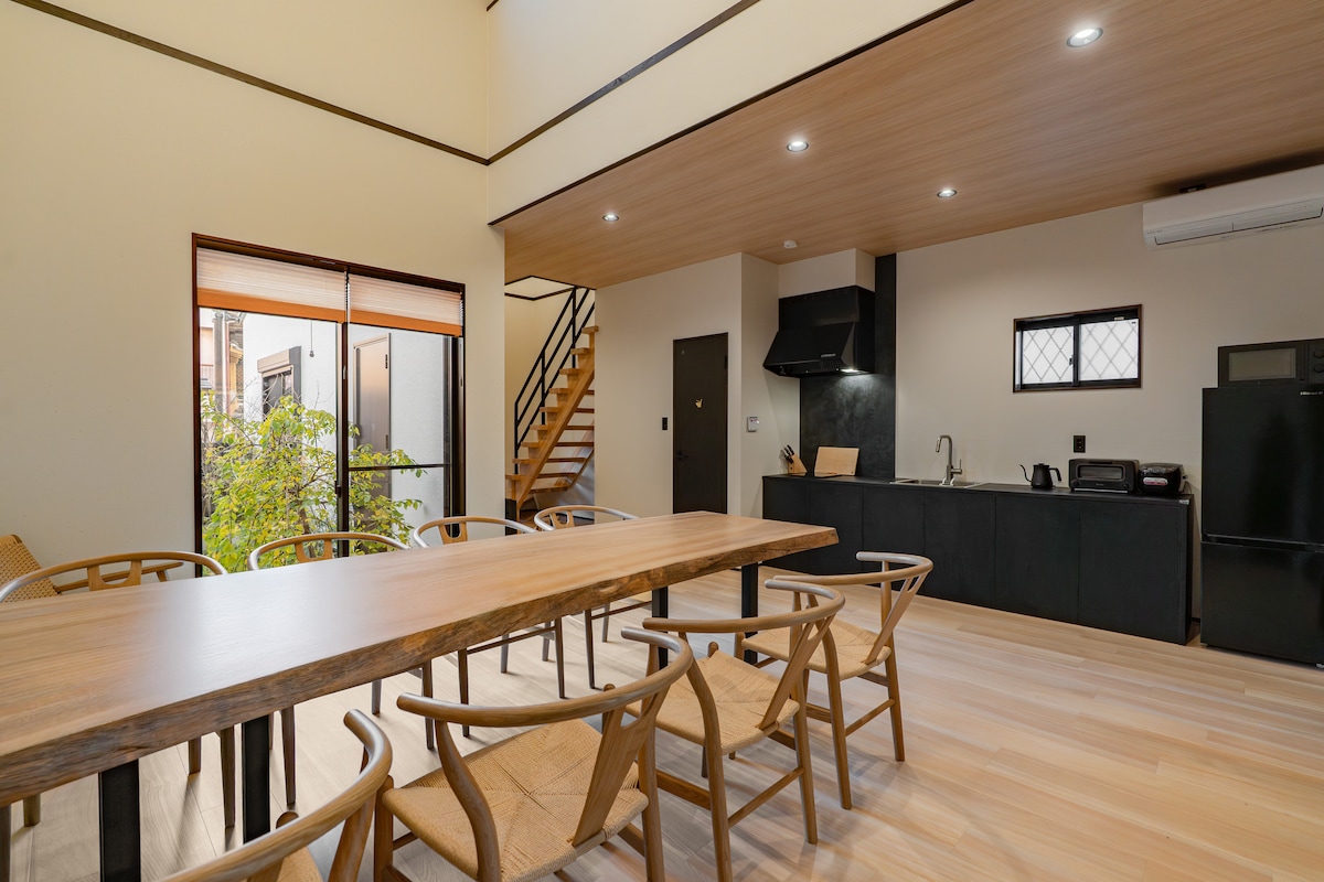 这是一间安静、有阳光的三层3ldk独栋民宿。采用日本传统真璧工法的木结构住宅,可以感受木材的温度。空间安静、舒适,住起来像在家一样。 • 🚶 交通超级方便,步行约 5 分钟到天下茶屋站,直达关西机场约 39 分钟,前往难波、日本桥、心斋桥、道顿堀、USJ、奈良、京都都非常方便。 • ☀️ 朝南+朝东角地,采光极佳,每个房间都很明亮。 • 🏠 三层空间、卧室全部独立,多人入住也能各自休息,不互相打扰。 • 🛒 生活机能完善, 7-11 步行约 2 分钟,大型超市步行约 6 分钟,日常采购方便。 • 🌤 带天窗的小阁楼 很安静,适合放空、看书、写字,回味旅途片刻。 • 🌿 一楼传统和室+小花园 氛围宁静,哪怕只是坐着放空,也会觉得很舒服。 • 🍽 二楼餐厅+厨房+8 人餐桌 适合一起吃饭、聊天,慢慢生活。 • 🧳 宽敞玄关空间、可放置多件大型行李 • 📶 高速 Wi-Fi+50 寸智能电视(支持多语言)适合长时间停留、远程办公,也方便不外出的长辈休息。 如果你正在寻找一个安静、有阳光、住起来舒服的大阪小家,希望这间房,能陪你度过一段放慢脚步的旅程。