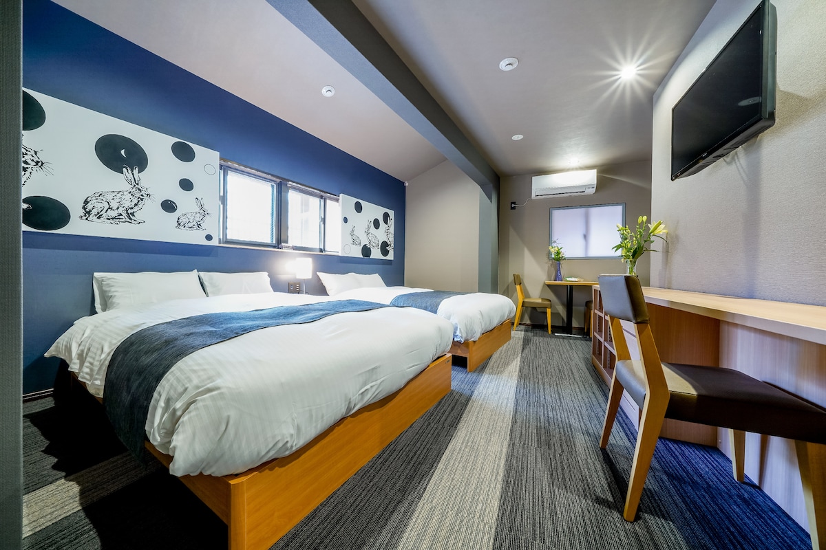 D3京都四條河原町地點超好,床好睡,浴室更新有小桌子邊旅遊邊工作也可[雙人床+單人床]睡眠互不干擾