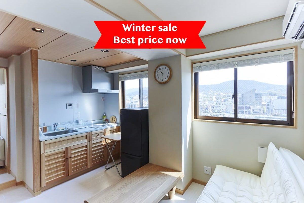 冬季限定|整栋出租私人150平方米(1615英尺²)位于鸭川沿岸|宽敞露台京都塔景观|免费P