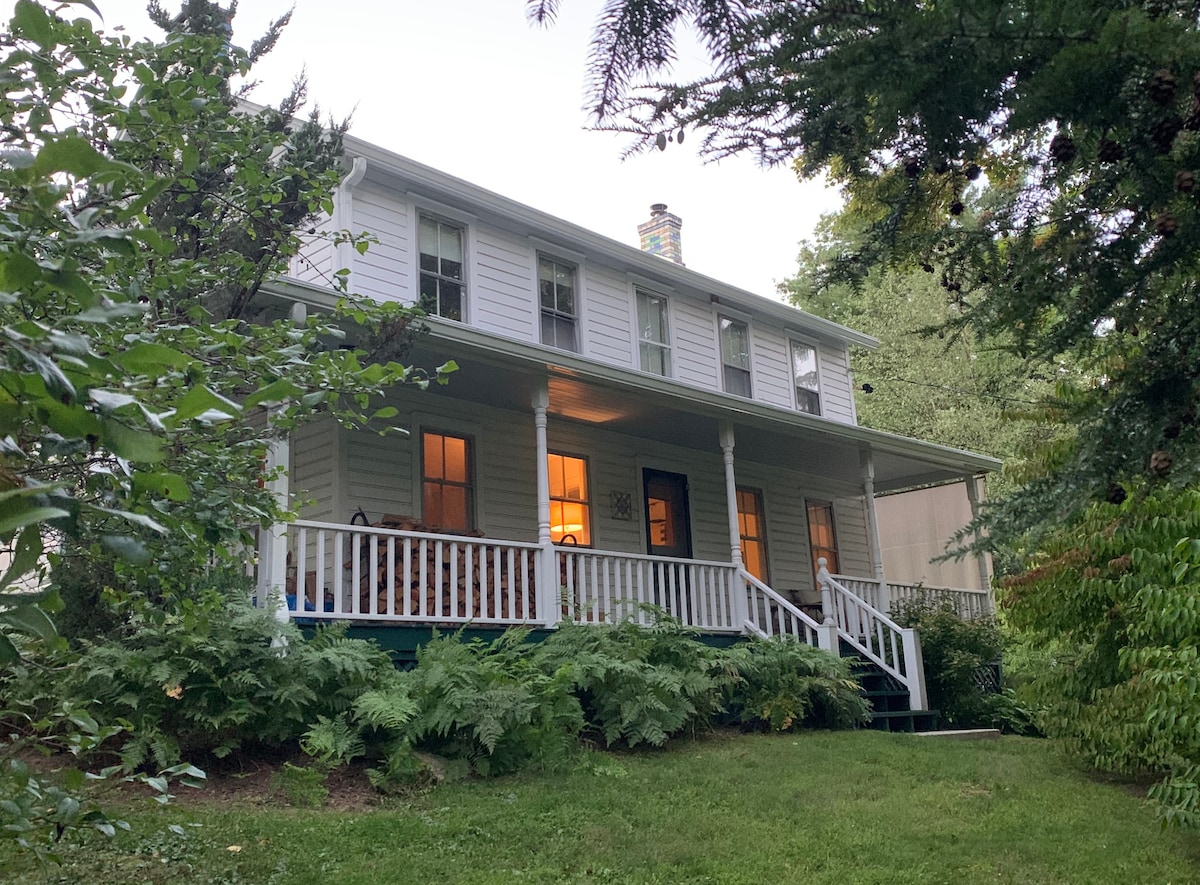 We welcome you to stay at our inviting home in the hamlet of High Falls. The two-story early 1900's era farmhouse is set on 12 private acres off a quiet country road in a lovely residential area. Grounds feature access to woods & pond + the canoe-ready Roundout Creek. A large sunlit family room, a variety of games, vast outdoor space with patio furniture, in-ground pool/deck/BBQ/swings/firepit/hammock offer the perfect place to relax and restore your connection to nature, friends and family.