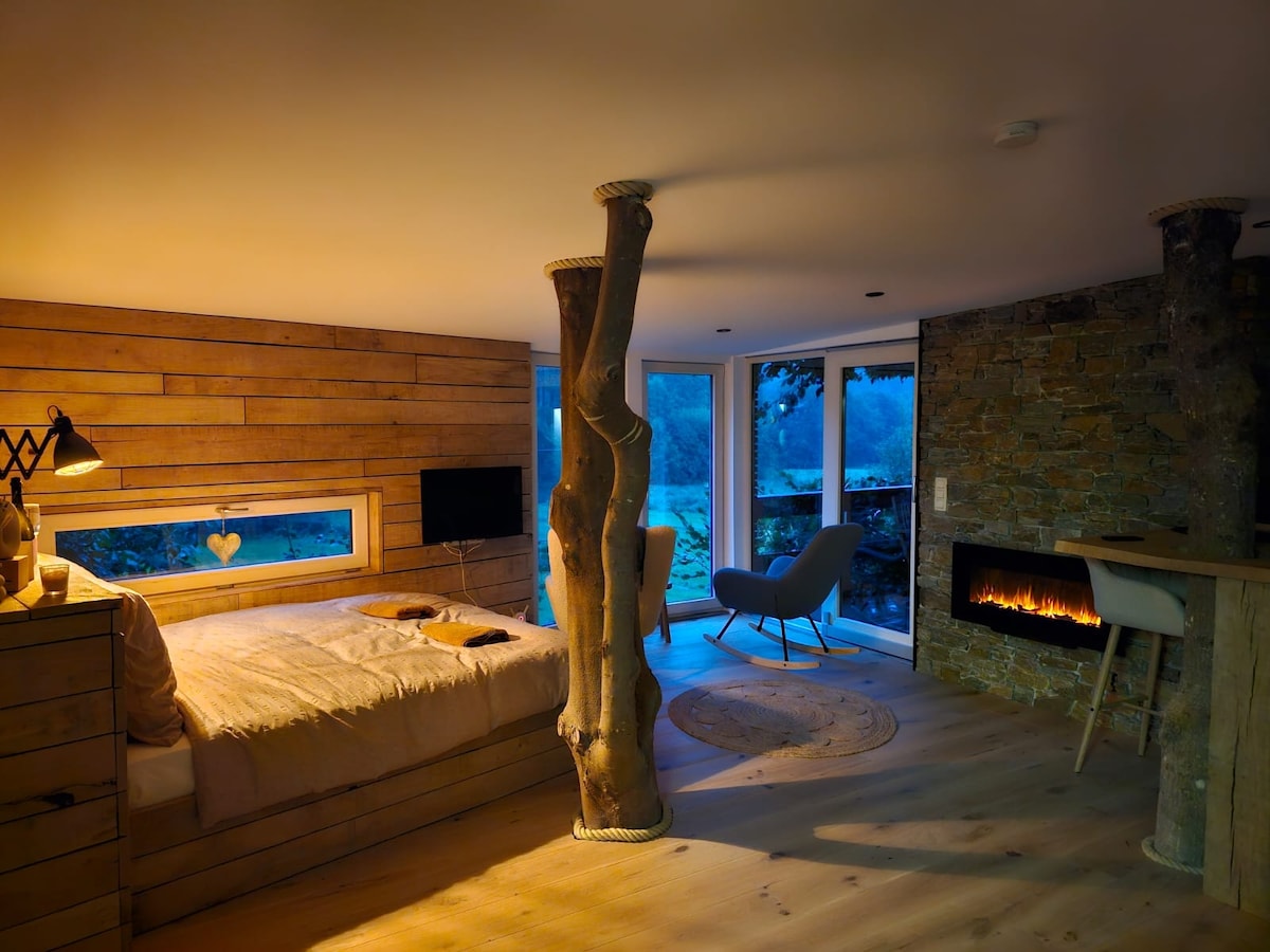 Vous cherchez un endroit où vous ressourcez au cœur de la réserve naturelle des Hautes Fagnes . Notre studio vous comblera par sa situation unique et son confort . De nombreuses balades vous seront accessibles depuis votre location aussi bien à pied qu'à vélo. Un abri vélos sera à votre disposition. Commerces et restaurants proche du logement. Proche du lac de Robertville et Butgenbach, Château de Reinhardstein , Signal de Botrange ... Durant l'hiver le Ski de fond et alpin sont accessible .