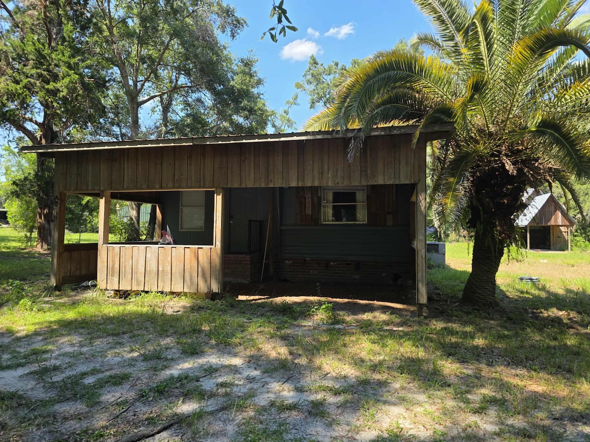 Suwannee River getaway in beautiful Gilchrist County, Florida. A beautifully kept one bedroom, one bath, modular home on a wooded lot with plenty of parking for boats and trailers. This house sleeps 2 in the single bedroom. We have tried to provide every amenity for a relaxing stay. Ideally situated across from the Rock Bluff boat ramp for the boating and fishing enthusiasts. The Rock Bluff General Store is right next door, Rock Bluff Springs is across the street.