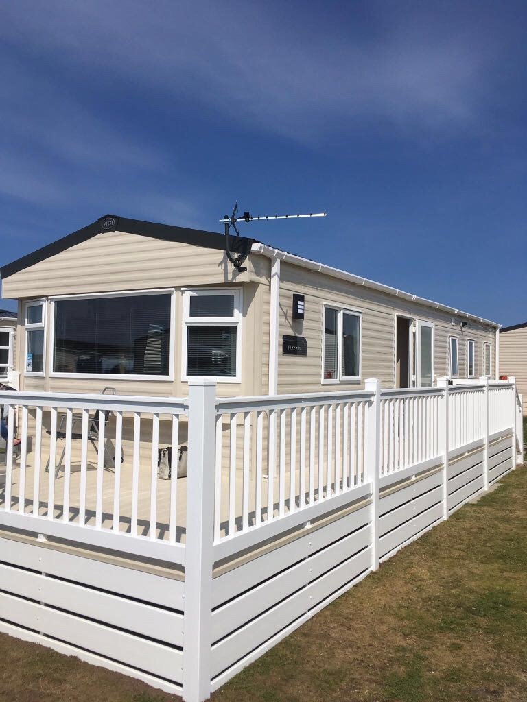 Luxury spacious 2017 Caravan with decking area and WIFI,with a glorious beach just over the dunes. 18 hole golf course on your doorstep, children's park, swimming pool, gym, shop, restaurant, arcades, bar and an excellent entertainment facility that caters for all. Please Note entertainment passes and not included and can be purchased at reception.