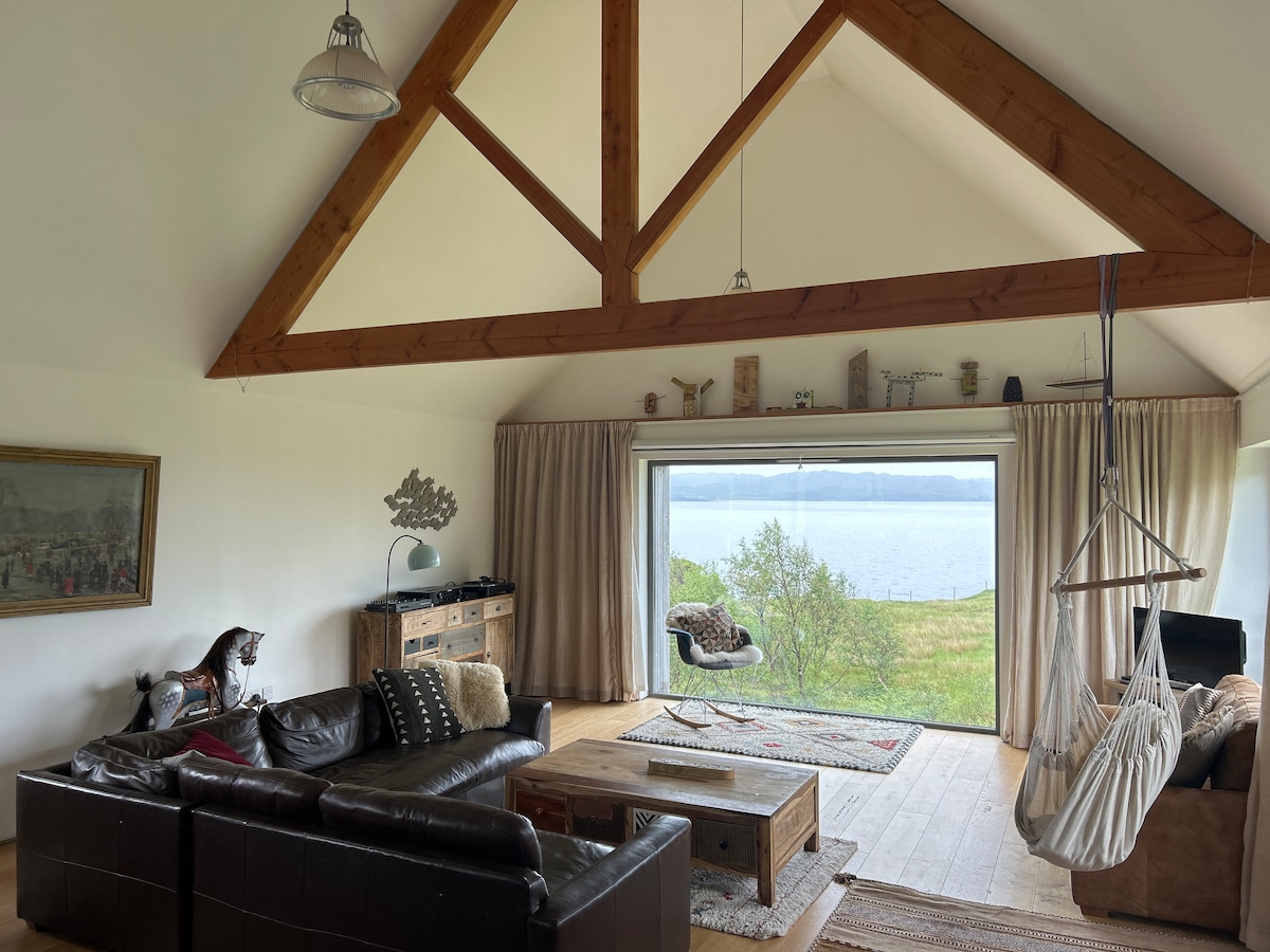 Gloriously set in stunning beach front location with magnificent views of over the loch and sea to mountains and islands This is a rarely available opportunity to have an unforgettable exclusive escape. Extensive house and grounds set within traditional Scottish highlands Croft and with its own access down to the beach. A stunning generous modern living space with all the glory of most dramatic Skye mountain scenary. .5 min to the boats to the foot of the magnificent Cullin mountain ridge.