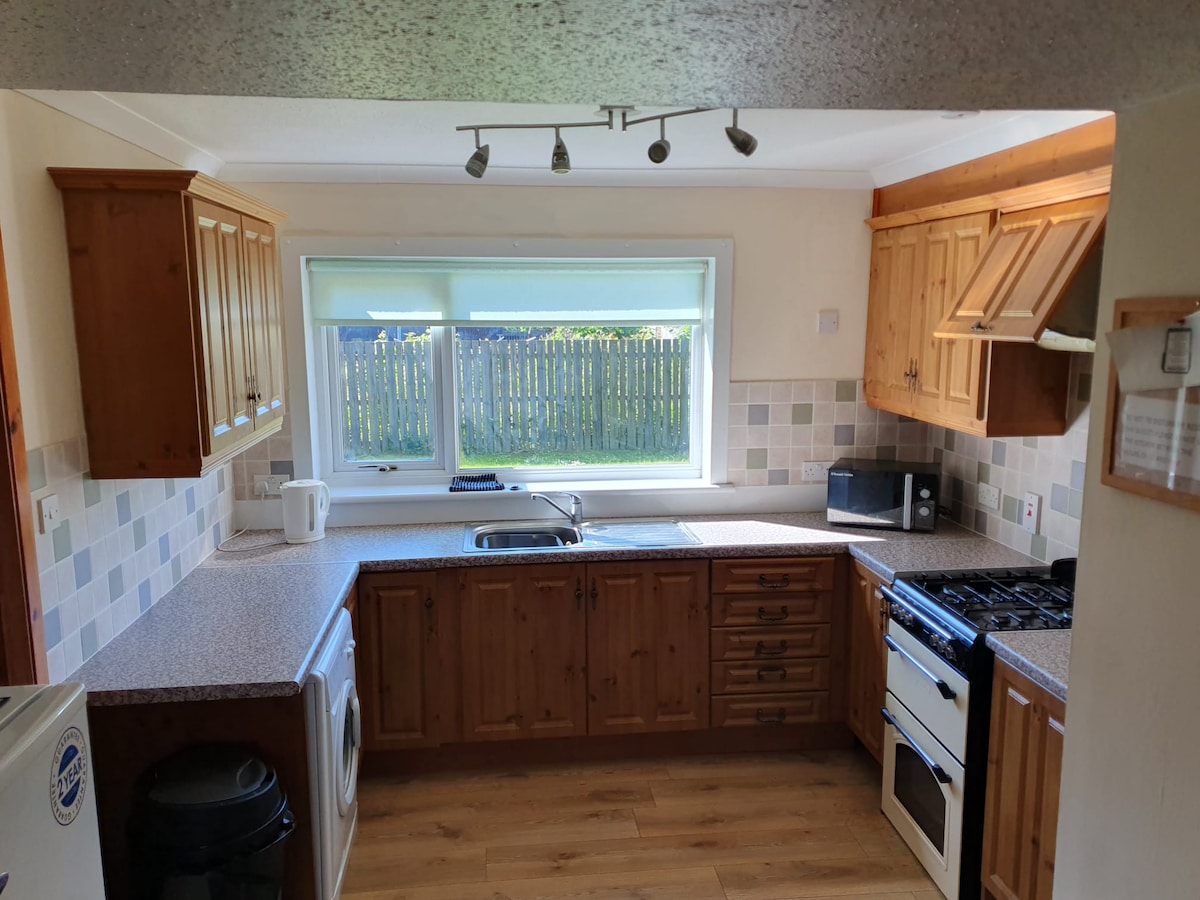 You will always get a warm welcome in this cosy timber forestry house. Bedroom areas are light and fresh with a separate dining/sitting room where you can relax with a book or a dvd. There is a breakfast bar in the kitchen and also an additional enclosed /sheltered area which can be used for relaxing and dining too. Achmore village is 7 miles from Eilean Donan Castle and Plockton, and 15 miles from the Isle of Skye.