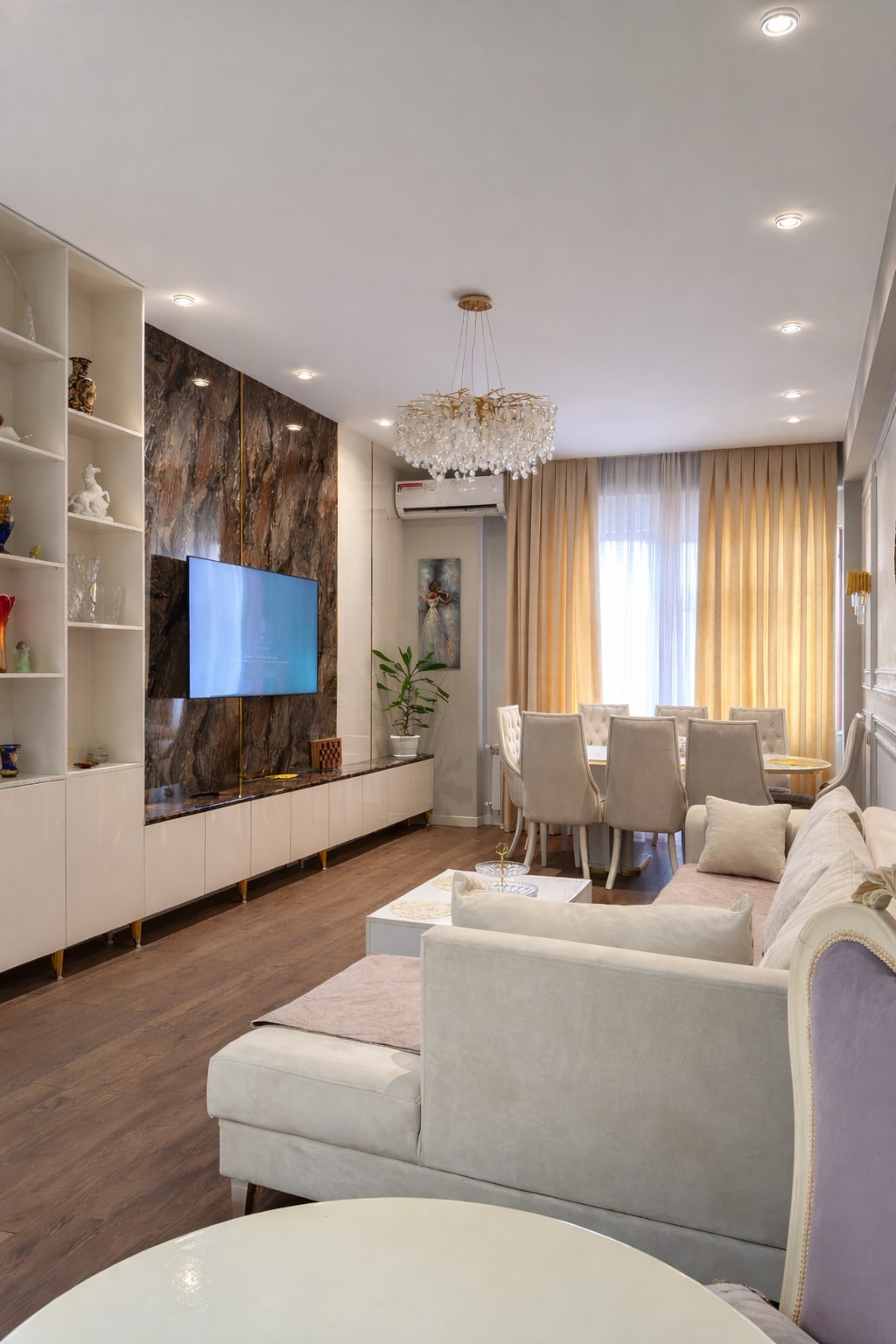 Heart of Baku: Spacious 100m² Apartment near Fountain Square This 100m² apartment in the “House with Angels” is just one flight above a bustling street in downtown Baku. Enjoy city life from the balcony or take a quick walk to Nizami Street and Fountain Square. With high ceilings, modern amenities and a glowing 4.97 guest rating, this bright, stylish home has everything you need and promises a comfortable stay in downtown Baku