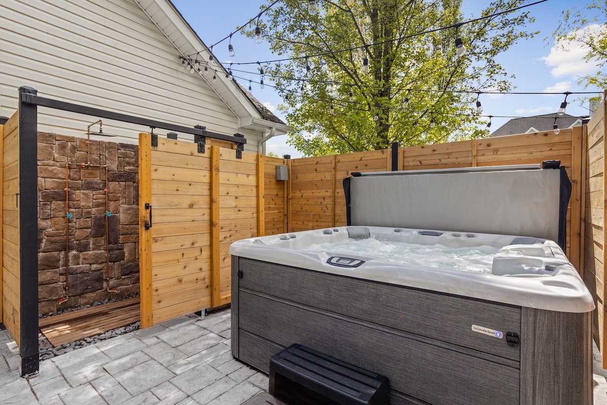 The guest have their own access via private entrance to the bedroom suite , hot tub and the 60 acres.
