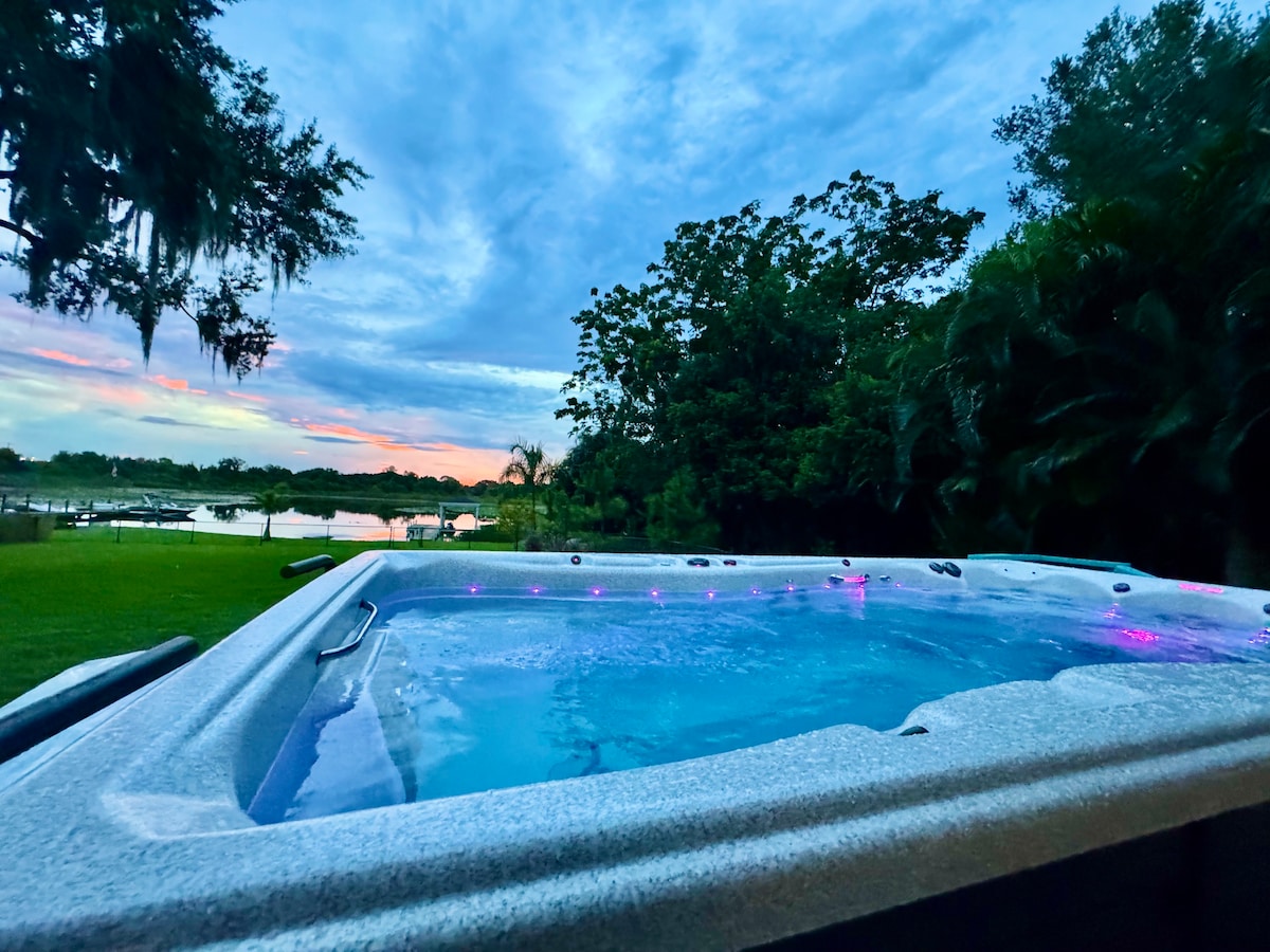 豪华湖滨带泳池、匹克球和私人码头