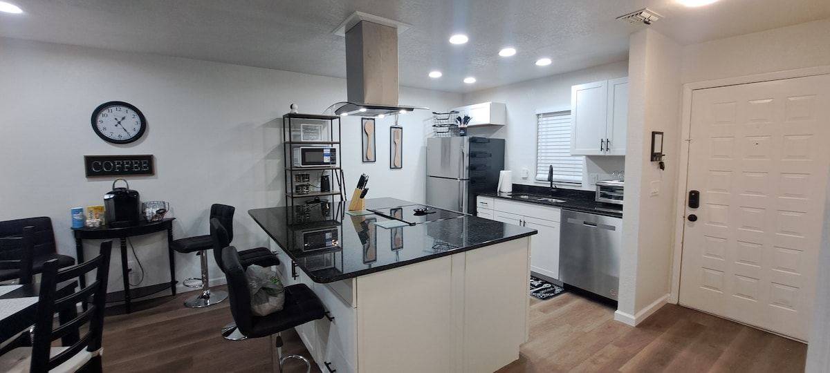 Live the lake life! Watch the sun set over Lake Huntley from your kitchen window and firepit; explore the lake by docking your watercraft (or rent ours) in your backyard, or use our included tandem kayak, canoe, SUP. This cozy house has 3 bedrooms, 2 bathrooms and sleeps up to 9 comfortably. Enjoy plenty of living space, a large screened-in porch, full kitchen, fire pit and BBQ grills. The house also includes onsite laundry, EV charger, RV hookup & parking. Kitchen completely renovated in 2024!
