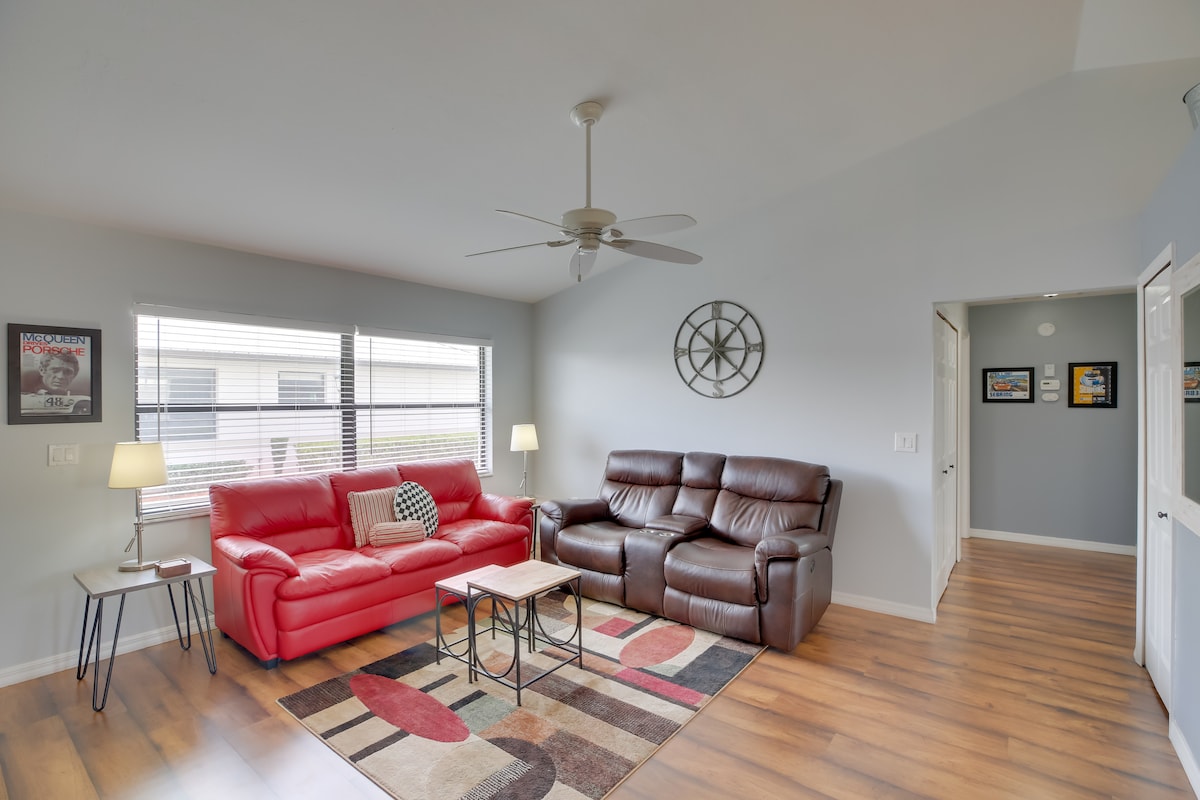 Explore ‘The City on the Circle’ from the comfort of this 2-bedroom, 2-bath villa in Sebring. The vacation rental is located in the Country Club Villas of Spring Lake and offers guests the opportunity to lounge poolside and practice their swing at the Sebring International Golf Resort! Catch a race at the International Raceway then stroll through the downtown historic district for food and drinks, or head home and prepare a family dinner in the fully equipped kitchen followed by a movie night.