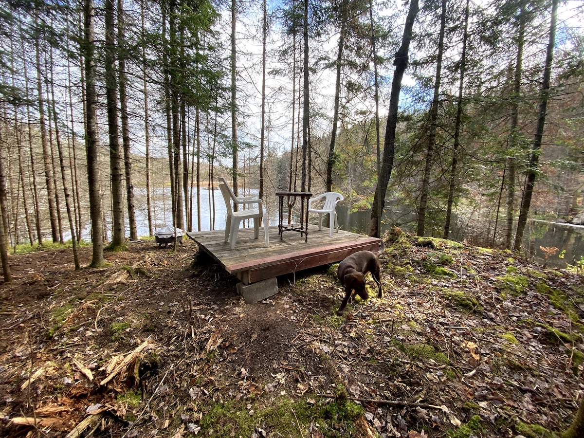 Studio Apartment - a spacious bed-sitting room with lots of character - rustic wood walls, casual furnishings, original art. 1870 farmhouse - 300 acres of peaceful woodland trails and wildlife. 5 minutes to Haliburton Village, 10 minutes to the Sculpture Forest, Haliburton School of Art+Design. We are close to adventure: 20 km to Sir Sam's Ski & Ride (mountain biking) and 34 km to Haliburton Forest and Wolf Centre.