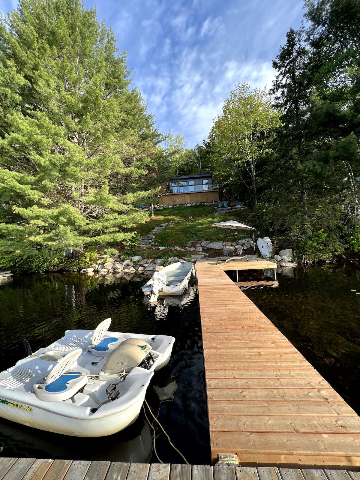 This beautiful luxury cottage will just wow you from the moment you enter. Clean shallow shoreline great for swimming. Has all amenities you will need and is about 15 minutes south of Haliburton. Cottage has Washer/Dryer, Wi-Fi, Lots of Parking, Large Fire Pits, Kayaks, Sleds (winter),Pedal Boat, Life Jackets, Coffee Machine (with coffee), Tea Kettle, Hot Tub, BBQ and TV. Lake is great for fishing, beautiful trails for trekking. Full linens and towels included. STR License: STR25-00047