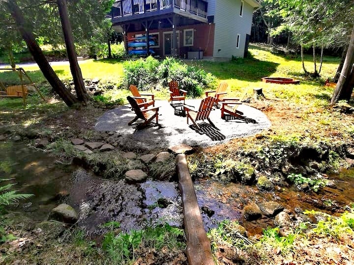 Four-season cottage, on the Irondale River. Enjoy luxuries such as heated bathroom floors, soaker tub, modern kitchen, washer/dryer. The high ceilings and windows allow nature in. Step out to paradise, relax by the campfire, paddle or swim the river. Three bedrooms: King, queen, double, plus 2 Bean Bag chairs that convert into mattresses. Perfect for families or romantic getaways. Comfortably sleeps 6 guests. NEW- STARLINK INTERNET!!