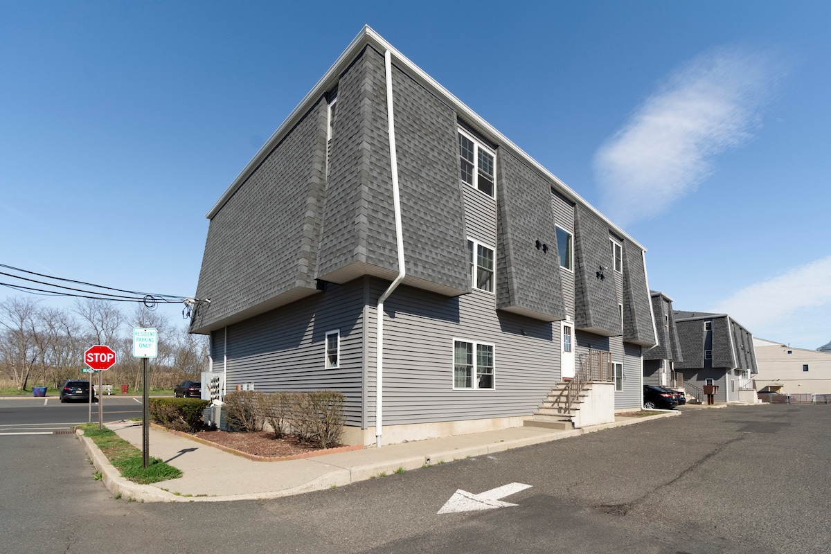 Private waterview apartment with backyard near Sandy Hook where the NJ Shore begins in the quaint and charming town. Make this your summer getaway. The apartment is just 1 hour from New York City by car or ferry. It's a 10-minute walk to Sandy Hook, a popular 7-mile beach or 3 minute drive. Note: We've always made cleanliness a top priority. NO PETS ALLOWED - A $500 CHARGE WILL BE INCURRED IF YOU BRING A PET ON THE PROPERTY