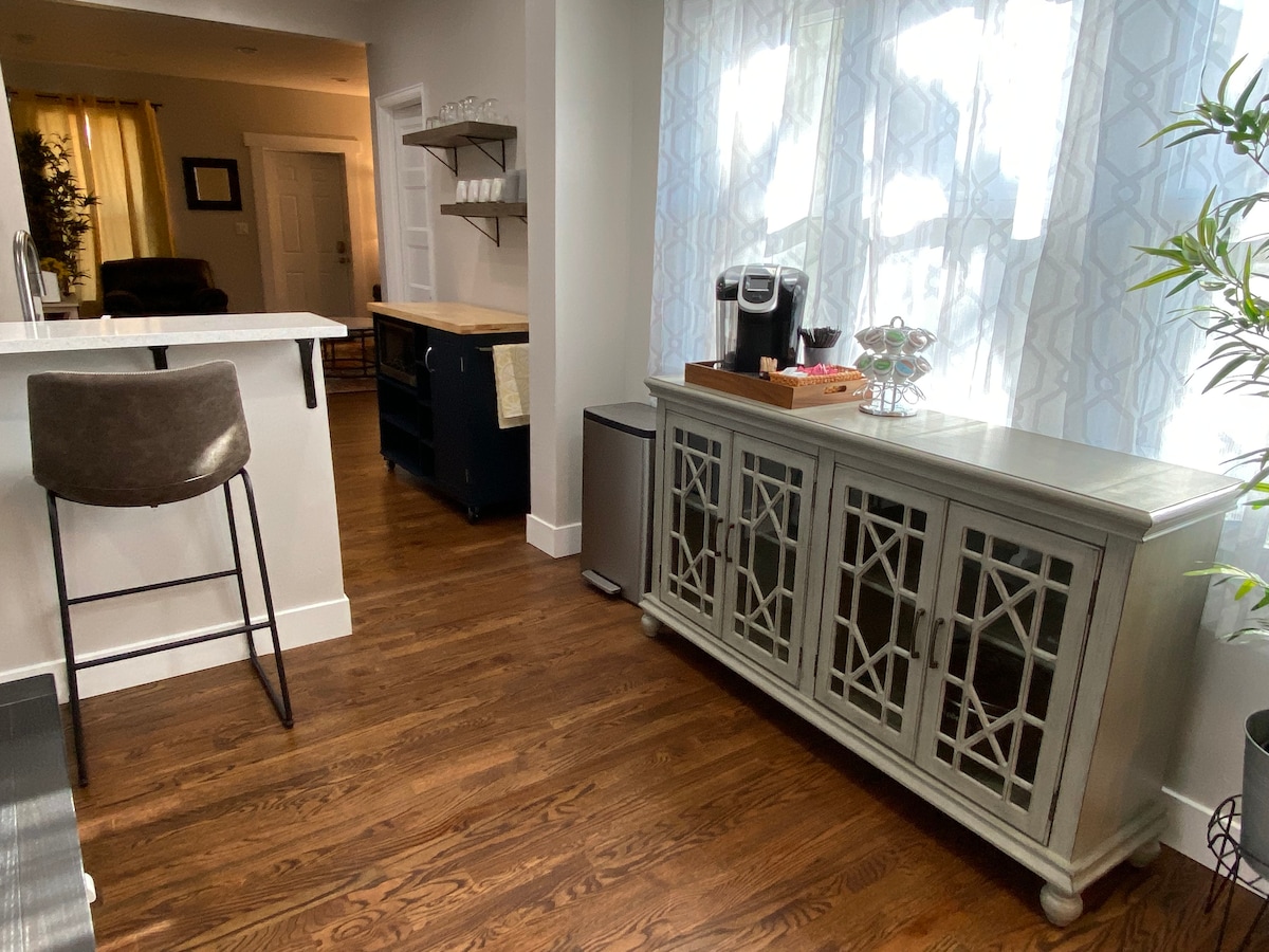 Pearl Alley is a unique little carriage house in a truly fantastic neighborhood! Construction on the carriage house was completed in 2019, but we designed it to feel like part of the original house, built in 1908. Reclaimed brick exterior, moldings to match the main house, and the original back door as the bathroom door! Our 400 sq ft carriage house is filled with cool decor (see if you can spot the marching-band bass drum table and antique sewing machine treadle sink!) and our sense of humor which you will find sprinkled throughout the space. We hope we make you laugh and bring a little joy to your day!