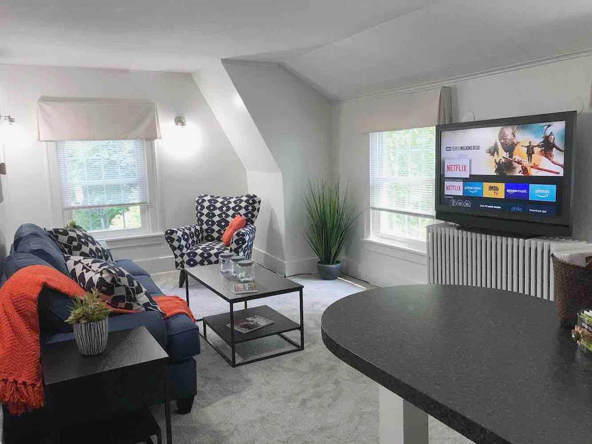 Welcome to our cozy, remodeled upstairs studio in S. Buffalo! Enjoy a prime location just 10 mins from the Buffalo Bills Stadium, close to local concerts, nightlife, restaurants, and casinos. Niagara Falls is a quick 20 min drive. The apartment features a fully equipped kitchen, comfy pillow-top queen bed, living area with a 55-inch smart TV, electric fireplace, and spacious bathroom. Enjoy the convenience of laundry room with washer and dryer. Free off street parking. All the comforts of home.