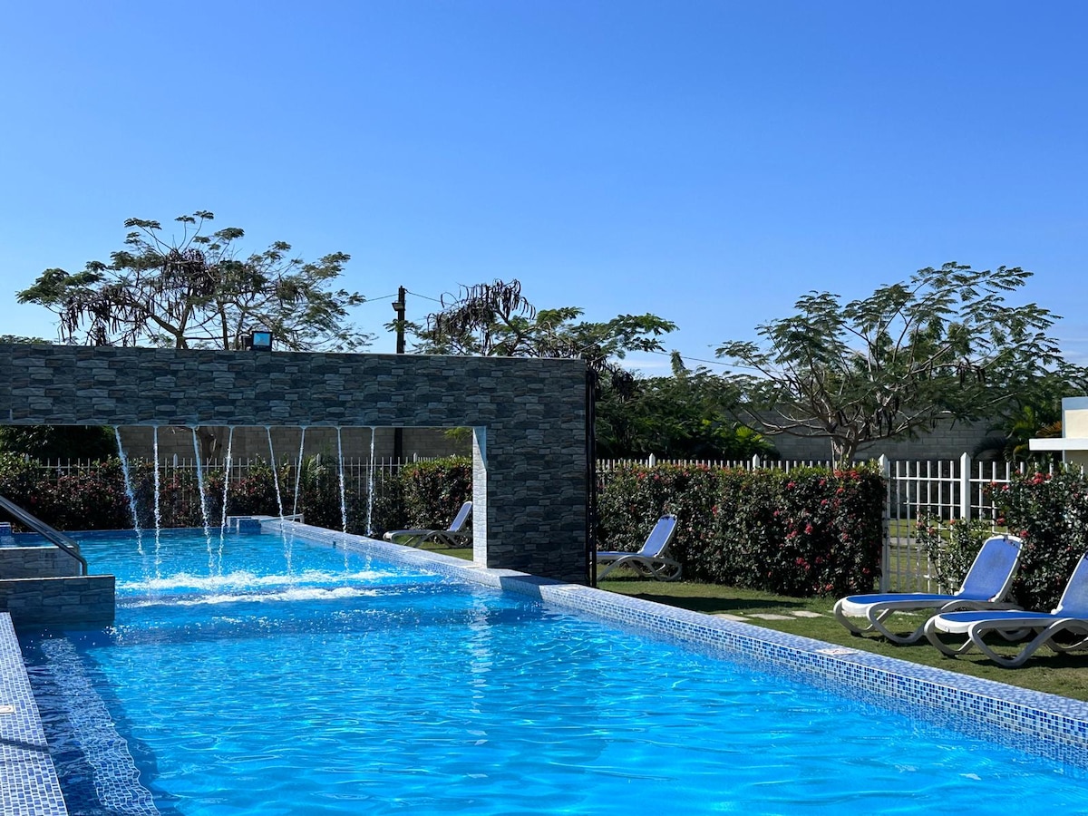 Estamos en Coral Village II, un conjunto residencial nuevo, bello, tranquilo, con 2 bellas piscinas y una agradable brisa, muy cerca de hermosas playas 7 minutos a pie. En el vecindario puedes hacer todo caminando, sin necesidad de vehículo para disfrutar de la playa, bares, restaurantes o simplemente comprar víveres en el minimarket. Consumo eléctrico y wifi (50 Mbps) incluidos en la tarifa.