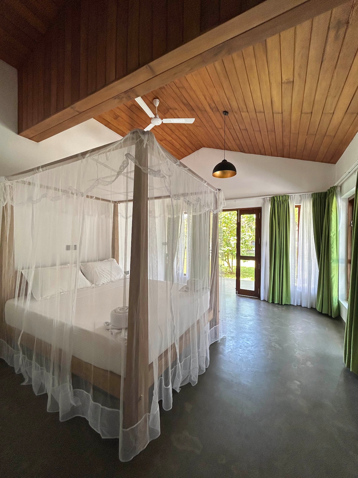 Erleben Sie ultimately Komfort in unserem Deluxe Doppelzimmer in Ahangama, Kabalanaroad, Sri Lanka. Das stilvoll eingerichtete Zimmer bietet ein großzügiges Doppelbett, eine Klimaanlage und eine private Terrasse mit Blick auf den Pool. Natürlich mit AC, WLAN, einem moderenen Badezimmer. Somit ist es der perfekte Rückzufsort für Paare oder Reisende, die Entspannung suchen