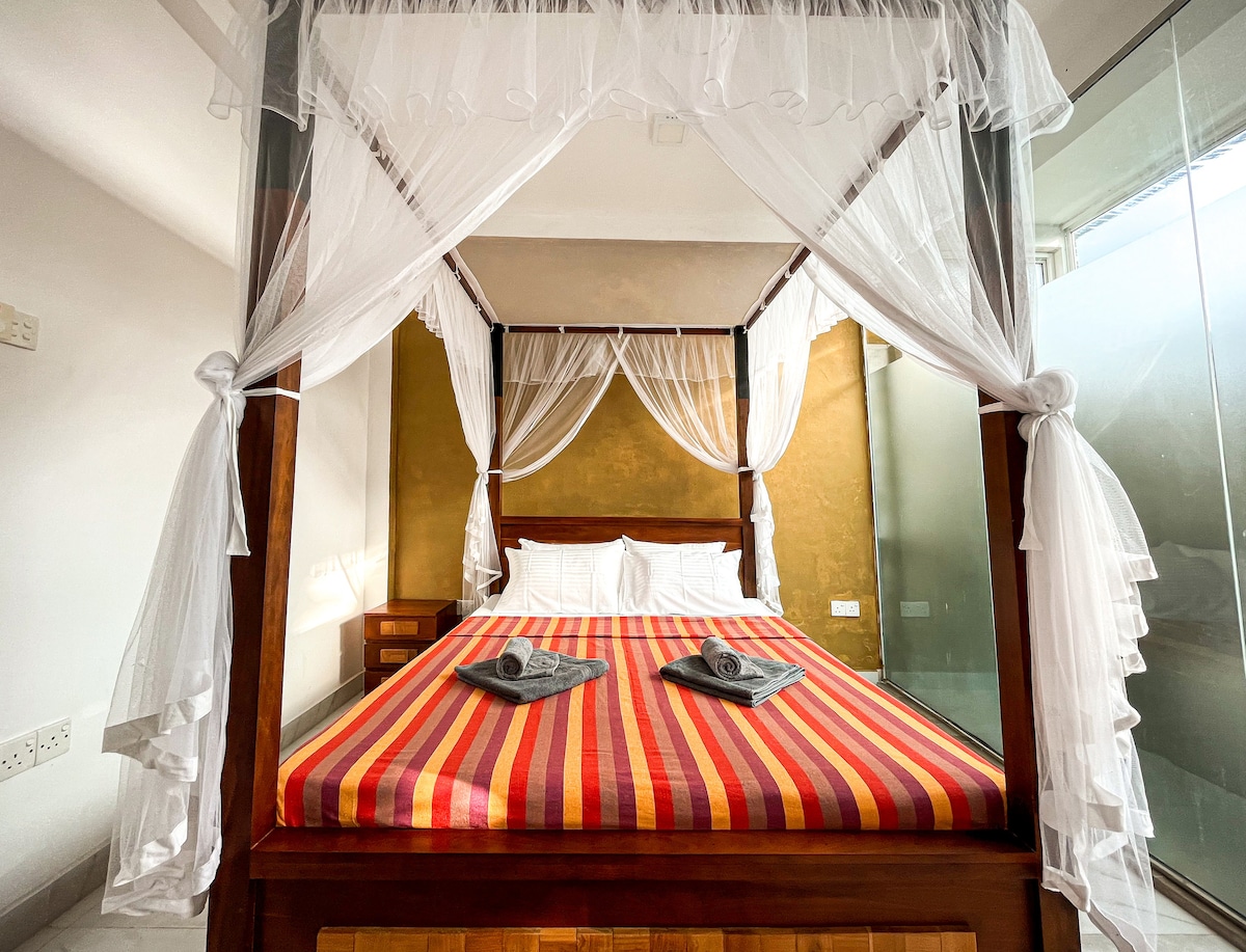 Beautiful Colonial style guesthouse set in an acre of tropical gardens with an infinity edged swimming pool and jungle views. All of our rooms have four poster beds, AC, ceiling fans and hot water showers. Both turtle bay & coconut tree hill are a 2 minute walk from us & the lively bars & restaurants of Mirissa's main beach are a 2 minute tuk tuk ride away. We also offer massage, yoga, surf lessons, Sri Lankan cooking lessons, taxi service & whale watching trips.