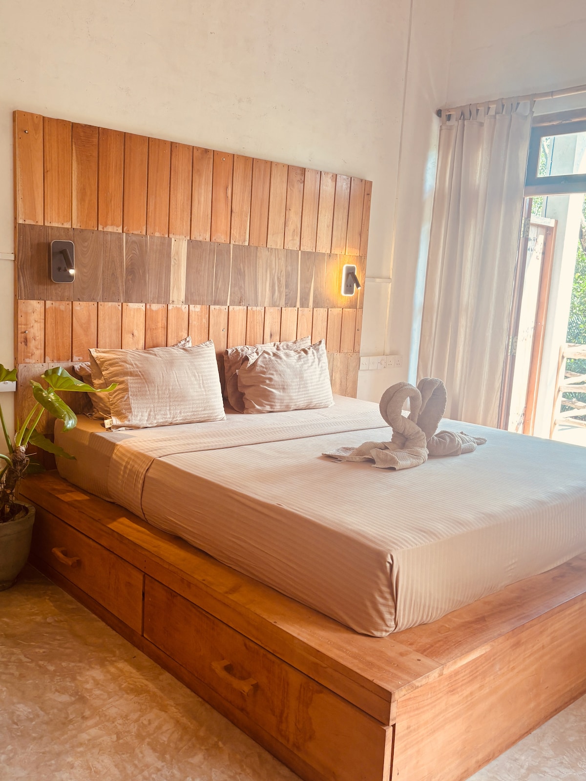 Discover a slice of coastal paradise in our luxurious beachfront suite. Boasting a king bed, attached bathroom, and a cozy kitchen, this haven promises rest and rejuvenation.Sip your morning coffee on the outdoor table, overlooking the serene beach, and breathe in the fresh ocean breeze from your private garden. Just a short drive away, explore the historic Galle Fort, bask in the sun at Unawatuna's golden shores and next door at turtle care center for gusts,you can meet turtles every day.