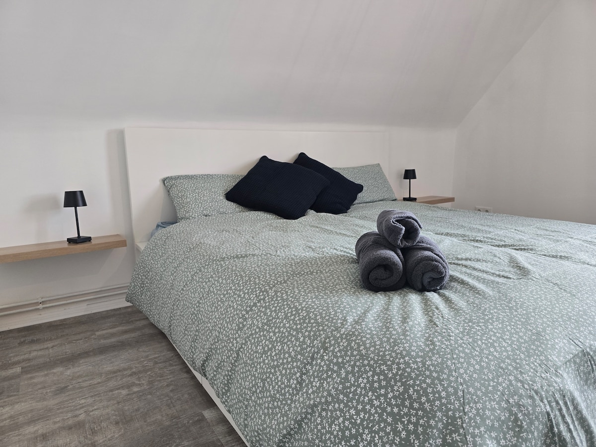 Die Dachwohnung verfügt über einen Wohnbereich inkl. WLAN und Smart-TV, einen Schlafbereich für 2 Personen, ein Bad sowie eine kleine Küchenzeile. Eine komplette Küche mit Waschmaschine, Geschirrspüler, Backofen und Kochfeld steht im Keller zur alleinigen Verfügung. Im Garten befindet sich eine Sitzecke am Gartenteich inkl. Grillmöglichkeit. Stromtankstelle 50m entfernt. Supermarkt 10 Gehminuten entfernt. Bushaltestelle 2 Minuten. Entfernung Hildesheim 10 Minuten mit KFZ.