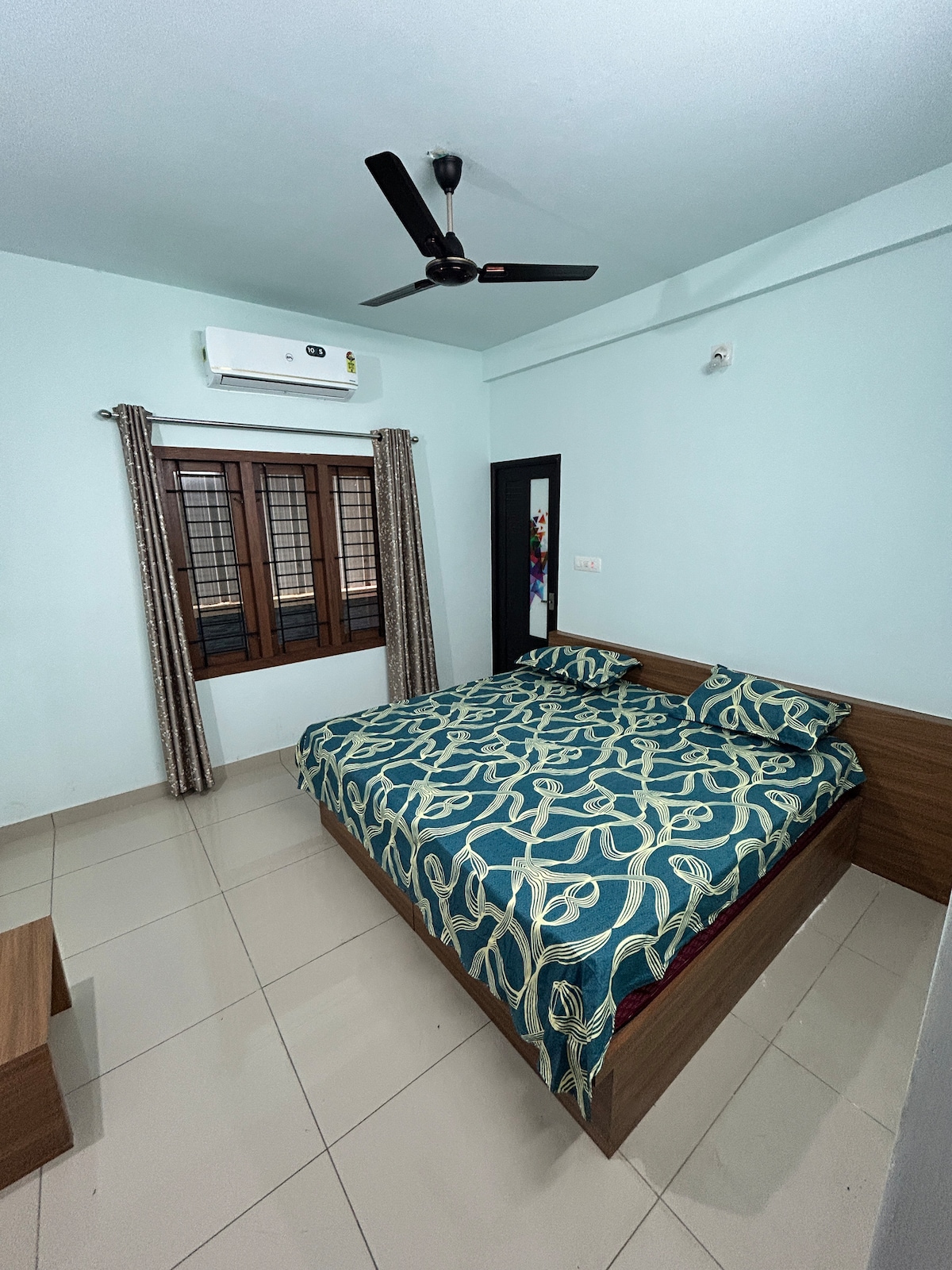 Relax in our peaceful home just minutes from Kozhikode’s top spots! This spacious stay offers two cozy bedrooms with attached bathrooms, a vibrant balcony filled with plants and a large, airy living room perfect for unwinding. 🏙️ Lulu Mall – 1.5 km 🏥 Aster MIMS Hospital – 2.2 km 🚉 Railway Station – 4.5 km 🚌 KSRTC Bus Stand – 5.2 km 🏖️ Kozhikode Beach – 5 km - Car parking is NOT available in property. - Drinking, smoking and partying are prohibited. - Perfect for families.