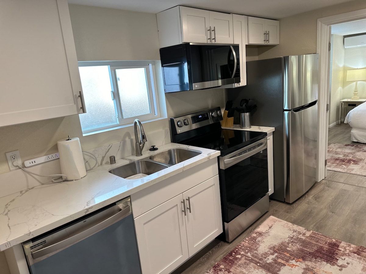 Heat up the cherry red kettle or complementary coffee and indulge in a morning snack from your private balcony, overlooking the serene Zen garden, and listening to the zen fountain, creating a chilled ambience. Zen Buddha, awaits your exit and every arrival to the property, whether retuning from the eclectic Hillcrest nightlife, or a scenic stroll through Balboa Park, with its many museums, gardens, fountains, restaurant and coffee shops.