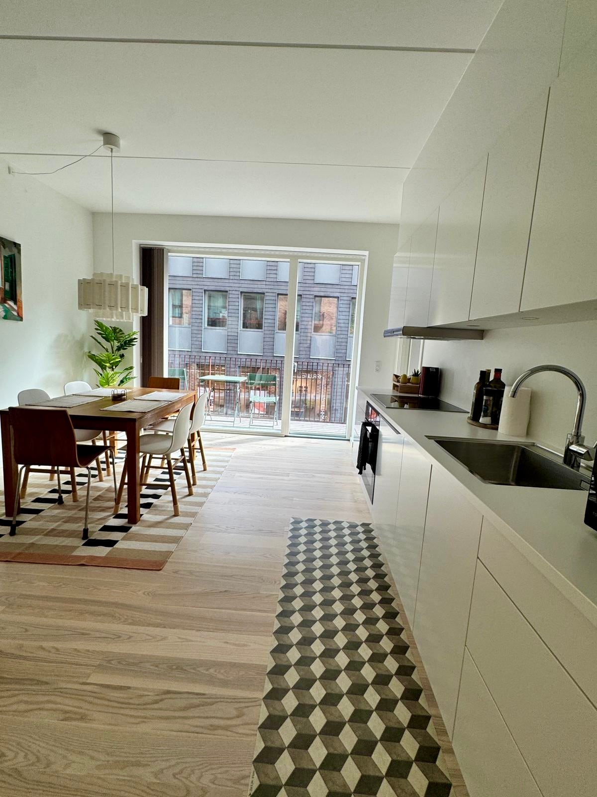 New bright apartment 81 m2, with lift, balcony & garage with your own car charger. The apartment is suitable for 3 adults or 2 adults and 2 children. The property is step-free and wheelchair accessible. Very good location: - 10 min walk from Tivoli and Town Hall Square. - 5 min walk to Metro st. - 50 meters from outdoor harbour bath. - a lot of nice cafés and stores nearby (also bike rental).