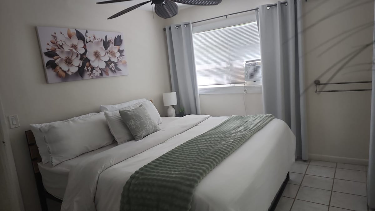 Spacious 1 bedroom/1 bath suite (within a quaint triplex). Large Tiki Hut with grill and TV. 5 minute drive to beach! NO PET FEES!! ✸No pet fee, we love our 4-legged guests! ✸Free beach chairs & umbrellas ✸ KING WESTIN HEAVENLY BED for ultimate comfort and sleep. ✸Echo, Prime Video, Netflix, Roku TVs ✸Unlimited household supplies (TP, paper towels, shampoo, etc.) ✸Free gourmet coffee & tea!!✸ 24/7 LOCAL host support (we're here to make your trip perfect!)