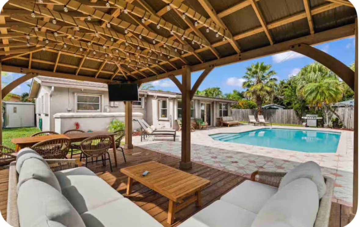 Welcome to our exquisite Fort Lauderdale retreat! This luxurious Airbnb offers an unforgettable vacation experience, combining elegance, comfort, and the ultimate in relaxation. Nestled in the vibrant city of Fort Lauderdale, our property boasts a heated pool, a charming pergola, outdoor fireplace, mini golf, game of cornhole, and so much more. Destinations: Fort Lauderdale Airport 14min Las Olas Blvd 6min Fort Lauderdale Beach 6min Hard Rock Casino 12min Sawgrass Mall 19 min