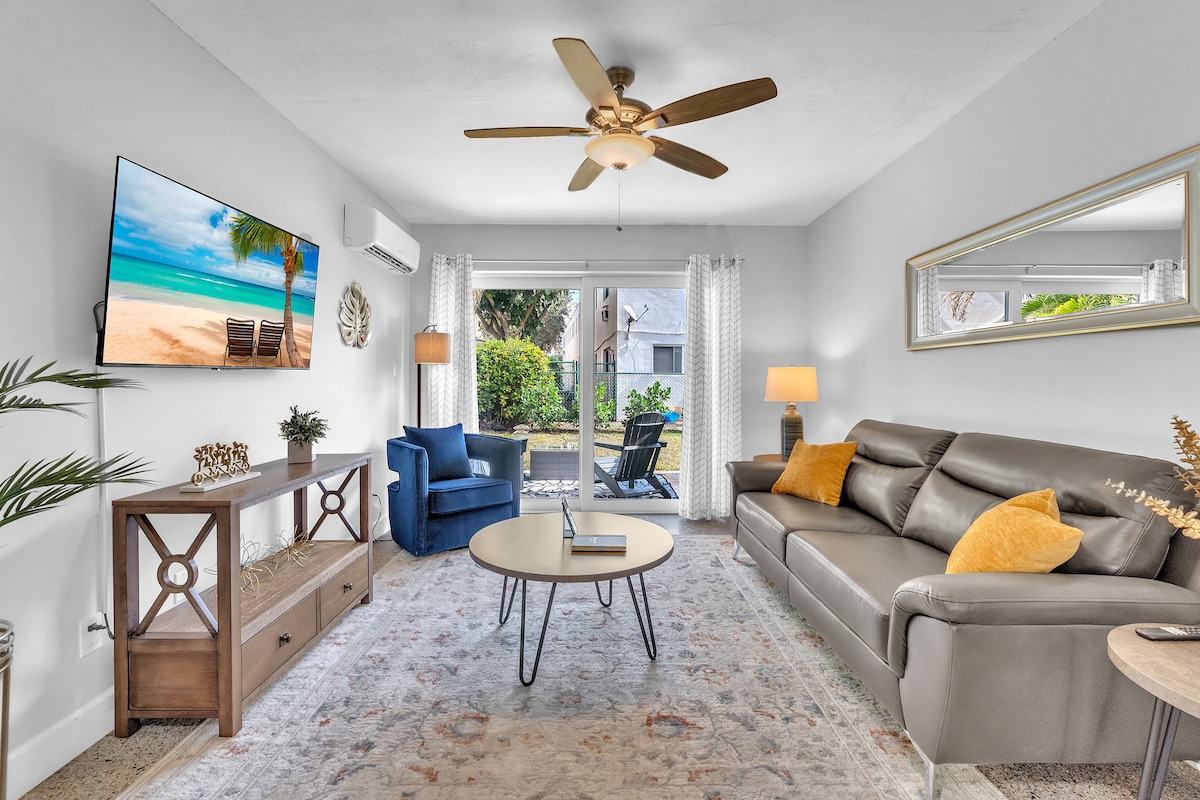 TWO BLOCKS TO PUBLIC BEACH! Completely renovated coastal modern dream vacation home in the heart of Deerfield Beach! Tons of space with large private/fenced back yard, big green space & grill, washer-dryer: all for your own personal & exclusive use. Walk two blocks to public beach, pier, boardwalk, nightlife & amazing restaurants. Surf, boat, fish, swim in the ocean. Two luxurious & clean bedrooms & two baths, + pull out queen sofa bed. Bright sunroom eating area. Bonus Ping Pong game room!