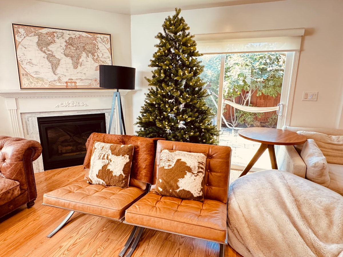 Welcome to your cozy Bay Area retreat - a cozy spot for fireside evenings, easy indoor-outdoor living & Super Bowl weekend stays! - Sleeps 6 | 3 bedrooms | 3 beds | 2 baths - Wood-burning fireplace & backyard fire pit - Enclosed atrium w/ custom mural - Kitchen & dining area plus dedicated workspace - Private backyard - fully fenced - Air conditioning, heating, WiFi, in-unit laundry
