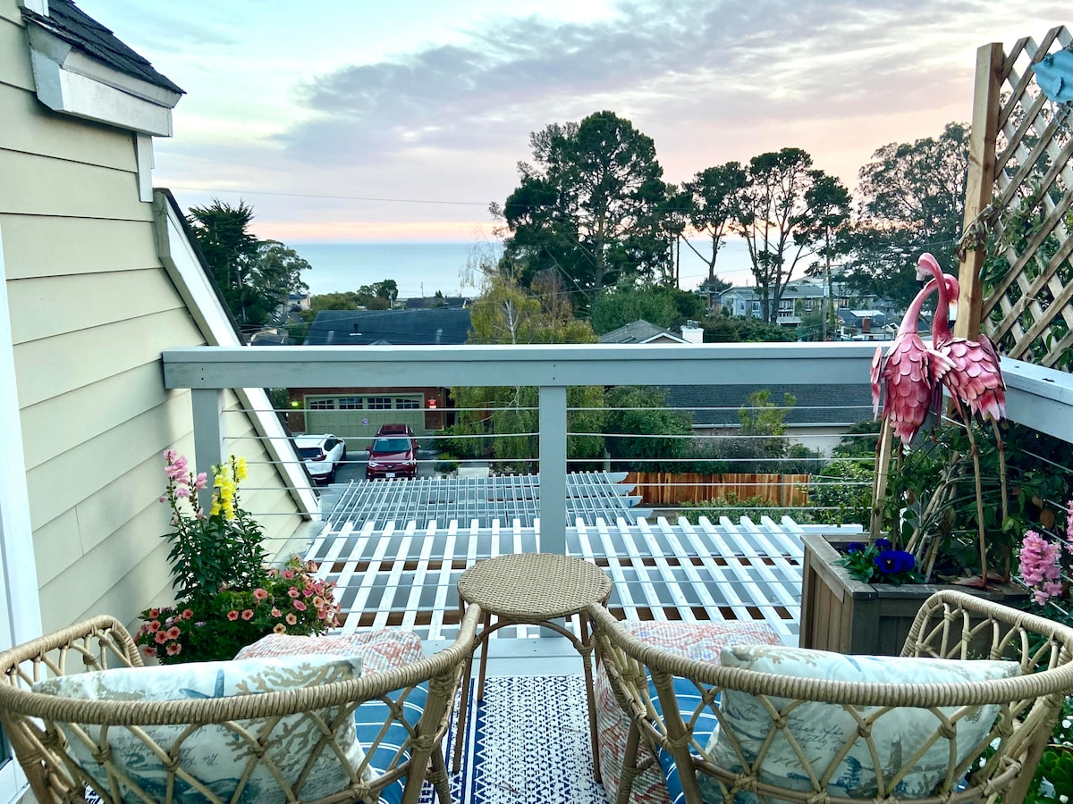 A perfect romantic getaways to this stylish indoor/outdoor Penthouse! We are 10 mins walk to beaches and 15 mins walk to award winning restaurants. There are a lot of fun activities: spending your days on the beach, exploring the hiking, biking, golfing, surfing, kayaking, paddle boarding or just simply kick back relax in this quiet and picturesque property with a panoramic ocean view, enjoying the sunset and the beautiful garden. We are 30 mins to SF or 60 mins to Santa Cruz.