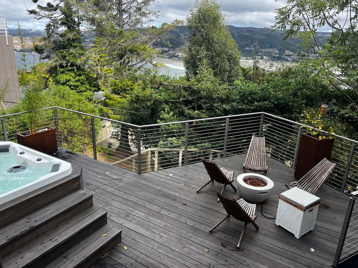 Welcome to your dream coastal retreat! This stunning 4bd, 3ba modern home boasts breathtaking ocean views. Just minutes from the beach and a short drive to San Francisco, it's perfect for surfing, hiking, and relaxing. Unwind in the backyard hot tub after a day of exploring! Whether you're here to catch waves, explore trails, or simply relax with loved ones, our clean and stylish home offers the ideal setting for lasting memories. Book your stay and experience the ultimate luxury getaway!