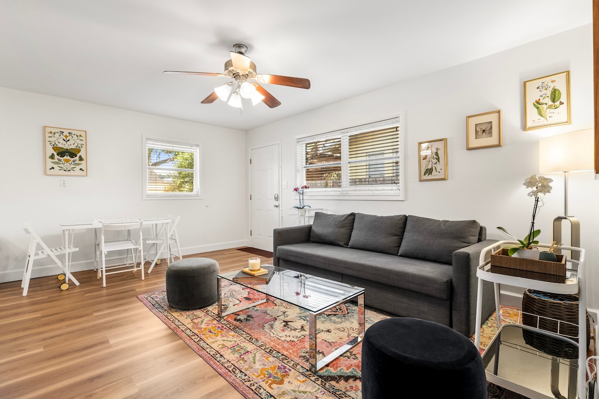 The whole group will enjoy easy access to everThis stylish place to stay is perfect for 4 people. one bedroom and living room It has a queen folding sofa , this spacious apartment is made for you and your family with all of the amenities needed for a relaxing vacation It features a queen size bed and newly renovated bathroom, new kitchenette , laundry Inside, huge fance backyard No parties allowed. No smoking 🚭 Pets allowed 1 parking spot availabley thing from this centrally located place
