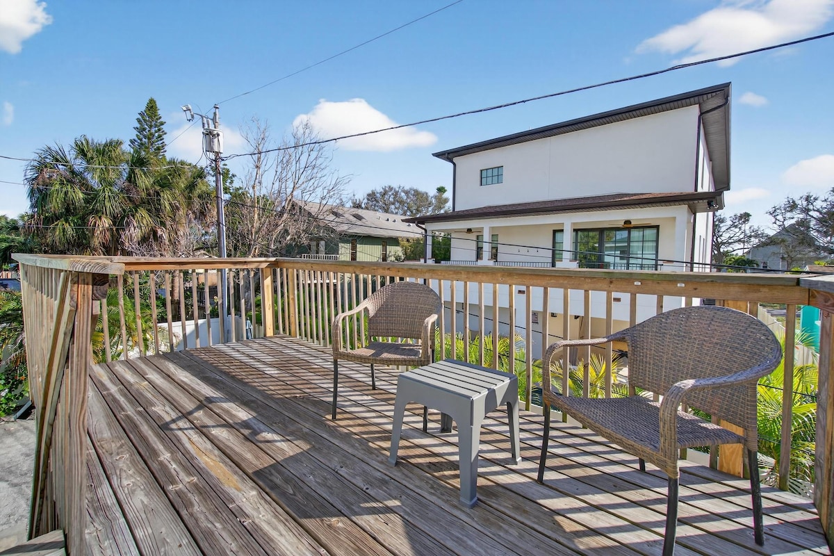 Welcome to The Sunset Beach Bungalow! This top-floor luxury water-front home located in Indian Shores, FL has been completely remodeled. Our serene getaway is situated on the Gulfs Coast. The large deck looks out over the water, providing a calming sanctuary to which you can retreat any time of day or night. Our home is over 1000 sq. ft and is newly furnished with plenty of room to relax during your stay. Our beach is private so there aren’t large crowds!
