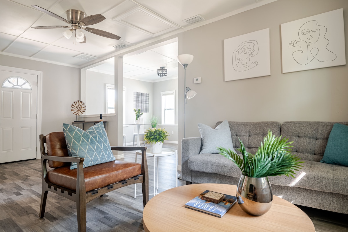 Beautiful completely remodeled house in the trendy Seminole heights Area, located minutes away from Ybor City, Downtown Tampa, Raymond James Stadium, Amalie Arena, Busch Gardens and Tampa Aquarium, It is about 15 minutes from Tampa Airport and a few blocks away from interstate 275, Easy access to Clearwater beach and St Pete Beach, The back yard has been accommodated to enjoy every minute of your stay.