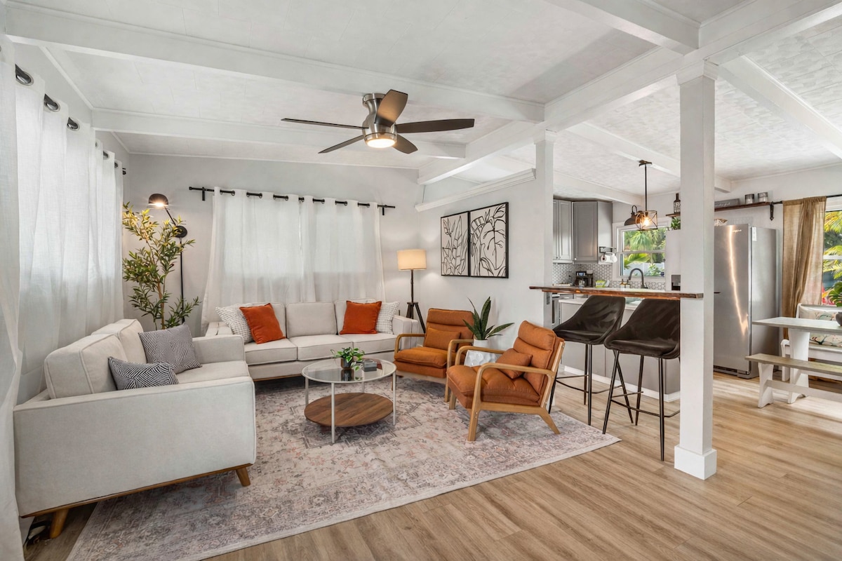 Prime location: Walk to Tampa’s Riverwalk & Armature Works. Close to downtown, convention center, and The University of Tampa. This two bedroom stunner is both spacious with soaring 11ft ceilings yet still cozy. Professionally designed & freshly renovated with your comfort in mind. Fully equipped kitchen with everything you need to create a home cooked meal. Enjoy outdoor dining on the brand new back deck or people watch while relaxing on the front porch Adirondack chairs.