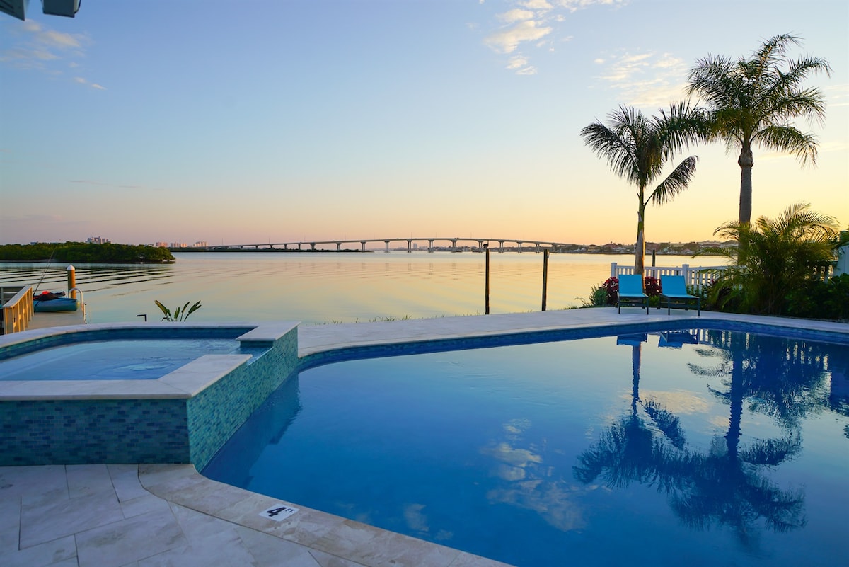 坦帕海滨温水泳池/热水浴缸绿洲,带码头