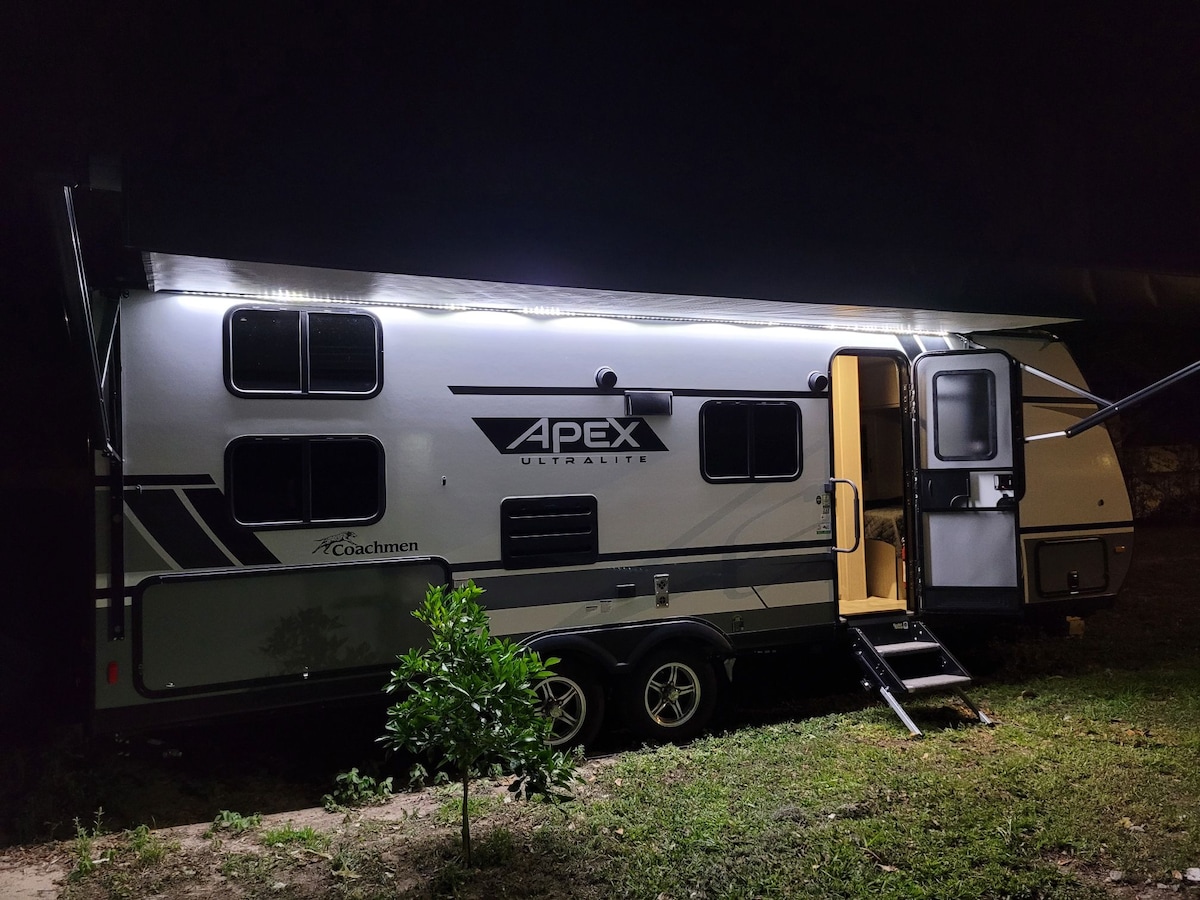 Keep it simple at this peaceful and centrally-located place that is 2 blocks from the water, only 2 blocks from Blue Jay stadium .6 mile in Dunedin. Our Luxury 2020 RV is top of the line and has privacy that is behind our enclosed gate with the entire unit fenced in for maximum privacy and also a great for you to relax and enjoy the outdoors. Unit has its own internet router with fast speeds for unstoppable internet action. We have available kids pen and high chair available upon request